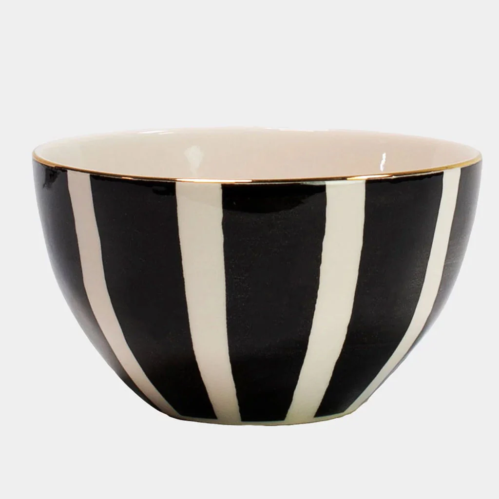 - Dos diseños: fondo blanco con franjas negras o con topos