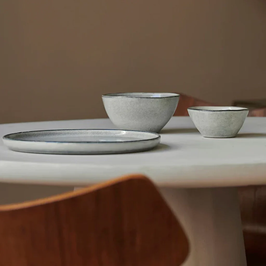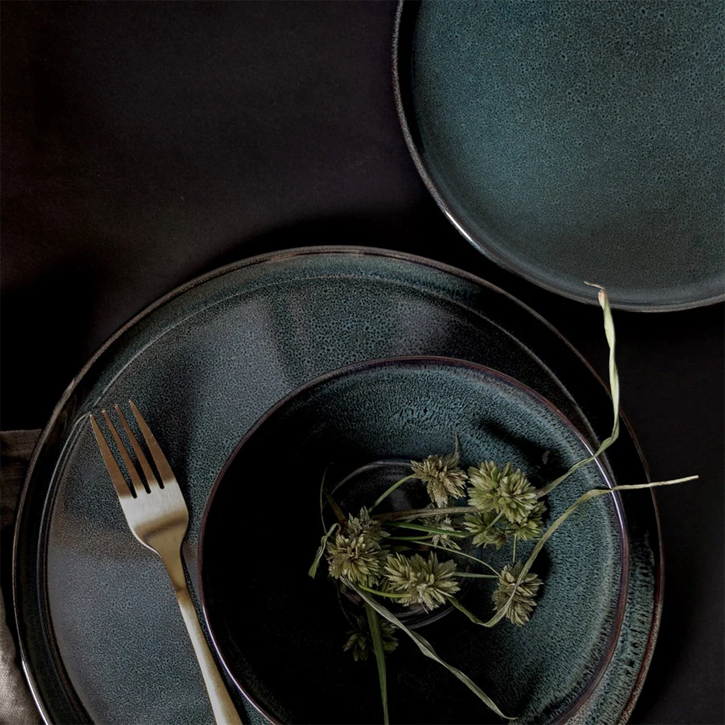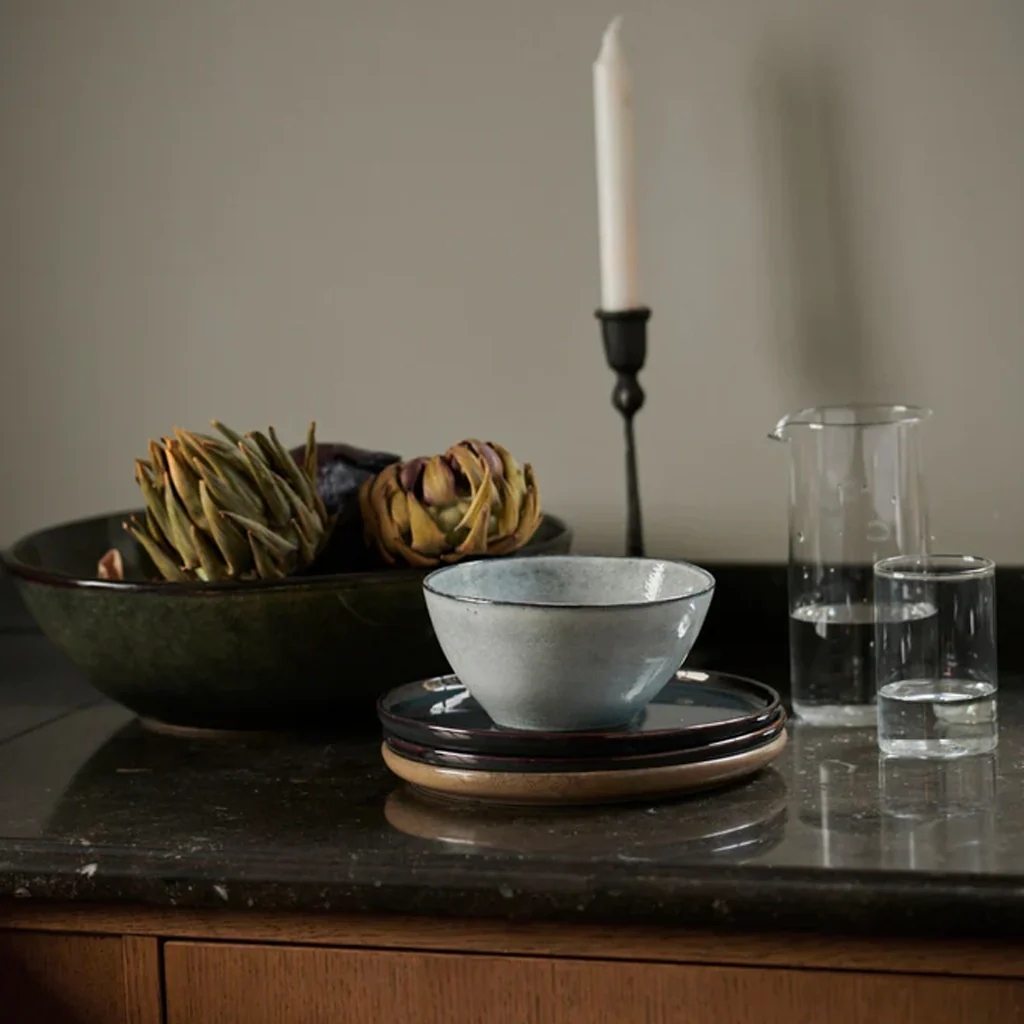 La colección Serenity de Dutch Rose captura la esencia de la vajilla rústica, inspirada en las formas limpias de la cerámica japonesa, integrando las técnicas de fabricación tradiciones con el diseño moderno del servicio de mesa. Todas las piezas son únicas, al estar hechas a mano con un esmalte reactivo especial.
