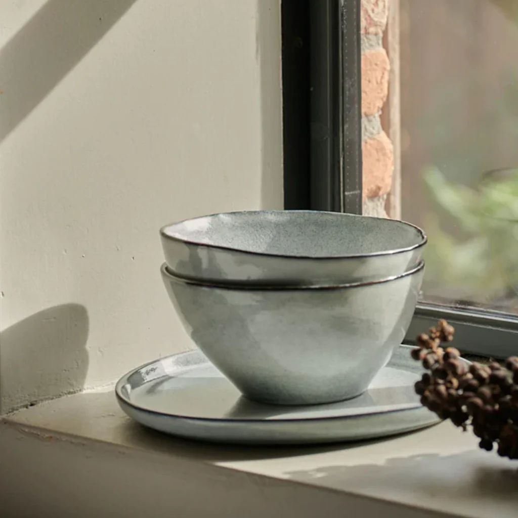 Los boles de gres se presentan en dos medidas, 15 cm y de 24 cm. Son ideales como cuencos individuales y también para formar una vajilla completa, junto con el resto de las piezas de la colección Serenity, que puedes encontrar aquí.