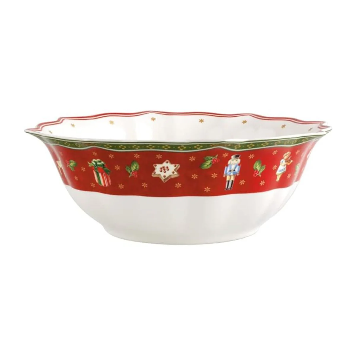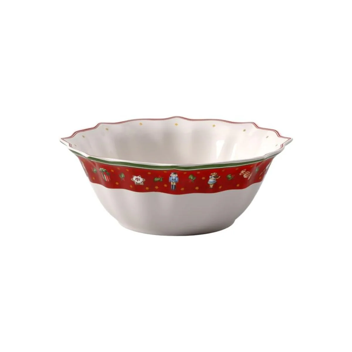 • Bol ensaladera de porcelana prémium, con motivos inspirados en la Navidad y los juguetes clásicos.