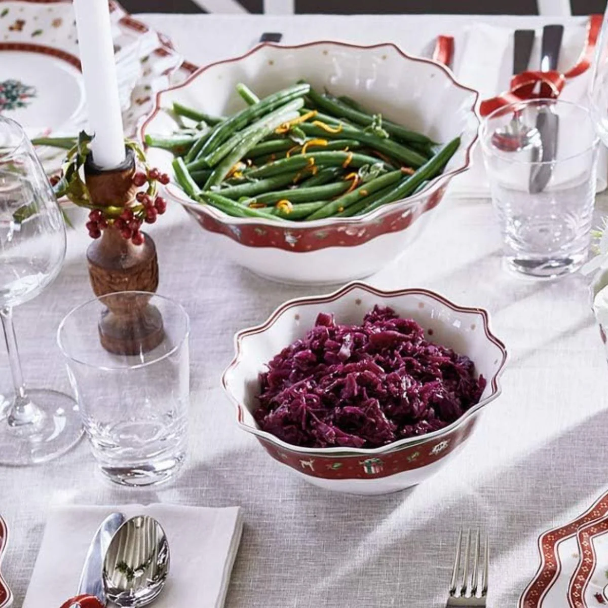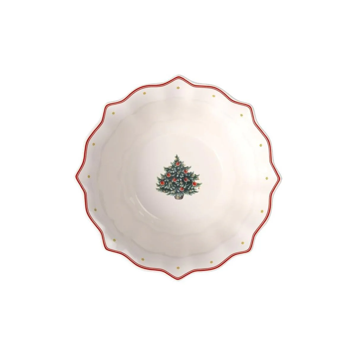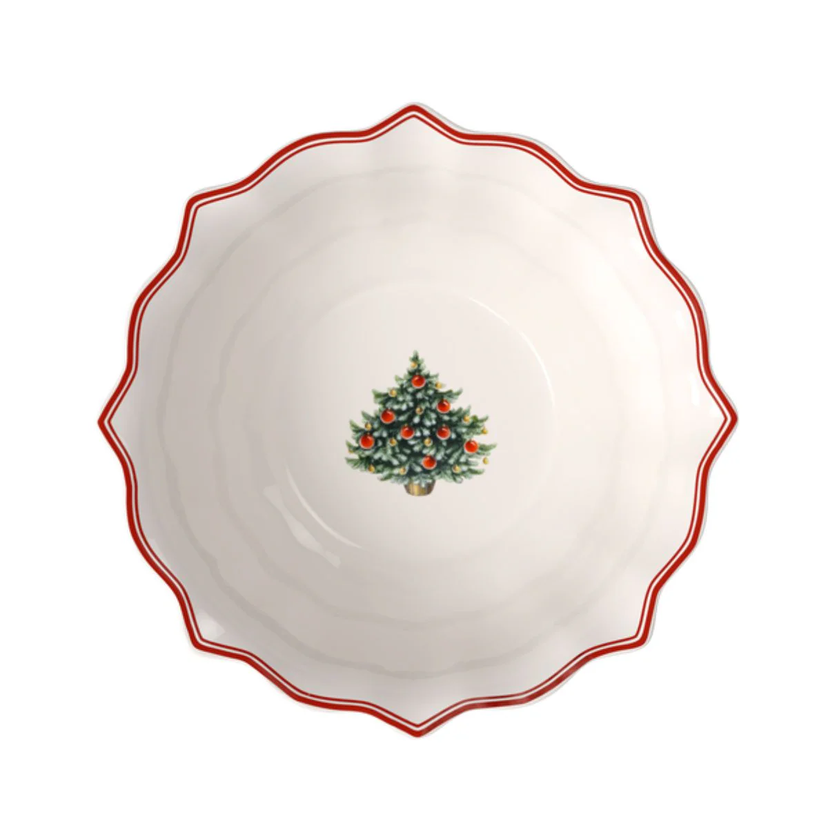 El Bol ensaladera de porcelana Toy’s Delight Villeroy & Boch es una pieza de gran elegancia y exquisito diseño. Su forma evoca la tradicional corona navideña que, perfilada en rojo, hace destacar al árbol de Navidad del centro del cuenco. Una encantadora cenefa roja, decorada con juguetes tradicionales y motivos festivos, envuelve el cuenco, destacando sobre la porcelana blanca. Tan preciosa como versátil, esta ensaladera es la pieza perfecta para presidir el centro de tu mesa en Navidad.