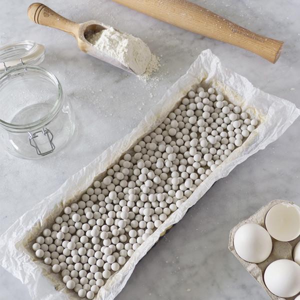 Las bolas cerámicas pesan lo suficiente y conducen el calor de forma homogénea para evitar que la masa suba y que se generen burbujas.