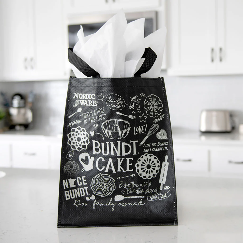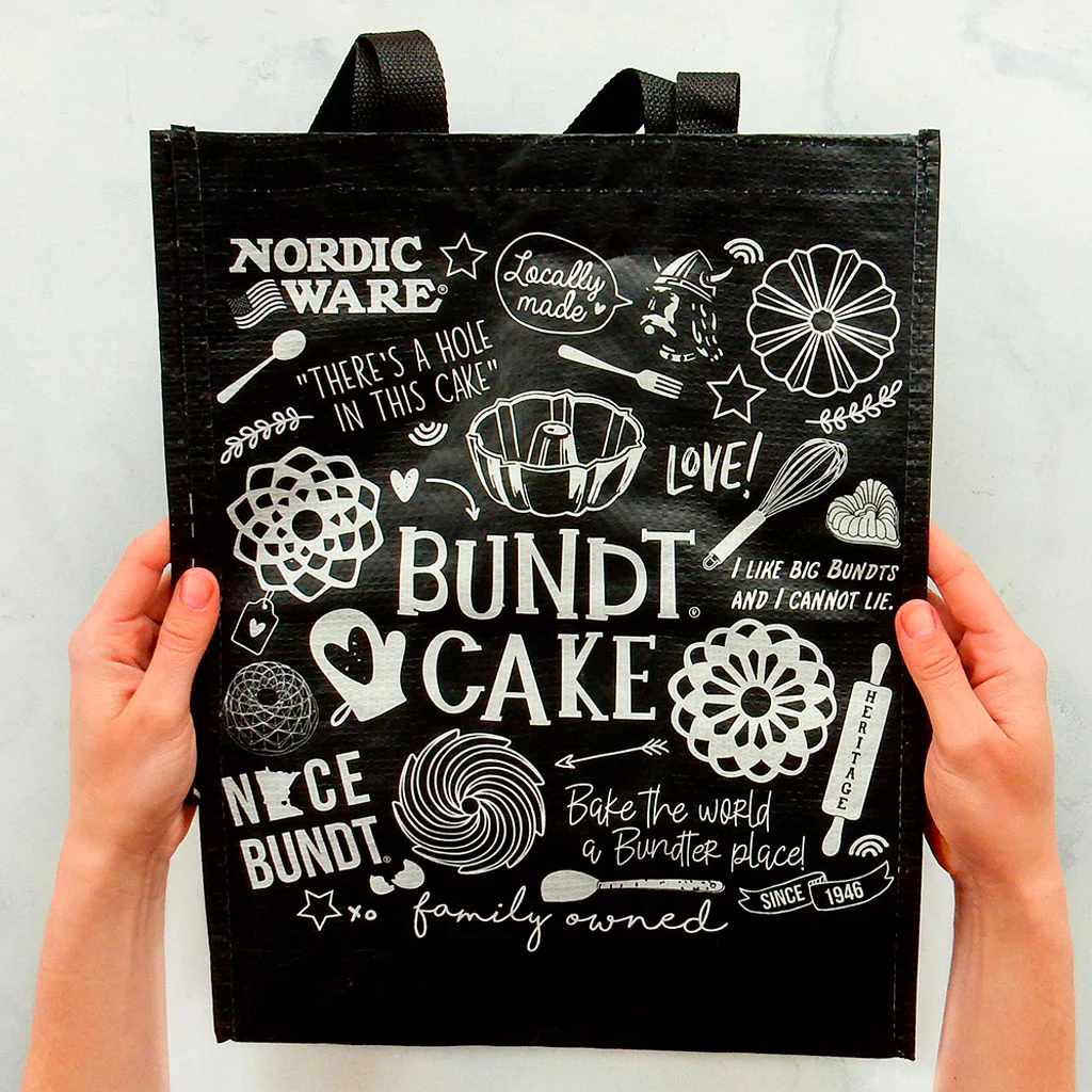 Se trata de una bolsa de la compra reutilizable exclusiva de Nordic Ware, con bonitos diseños temáticos del mundo de la repostería y los moldes Bundt®. ¡Una bolsa única, divertida y práctica!