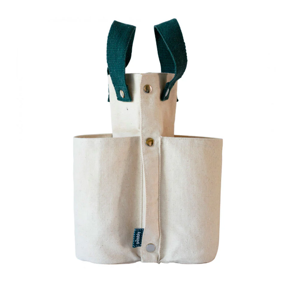 La Bolsa para botellas de Pebbly es ideal para llevar tus envases y bebidas cómodamente. Gracias a sus asas, con este saco de algodón podrás transportar 3 botellas con una sola mano, o colocarlo dentro de la bolsa de la compra o la del pícnic, bien sujeto por sus botones de presión.