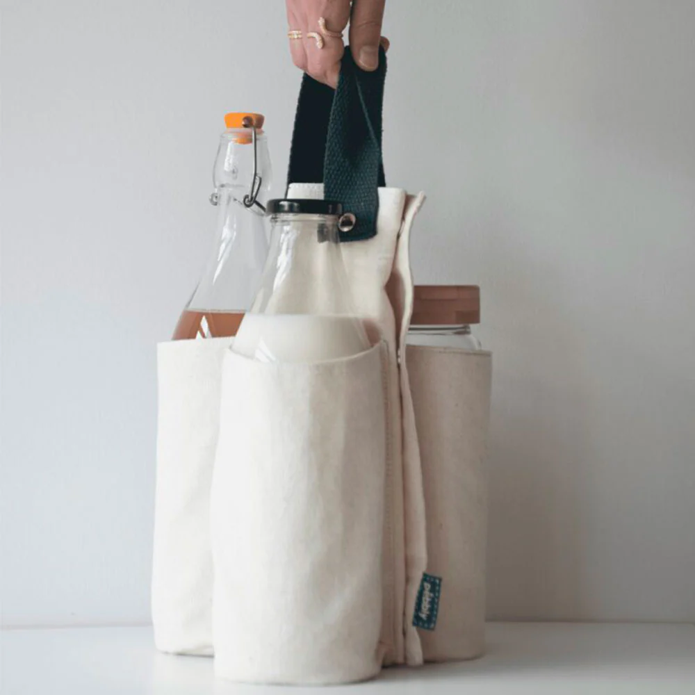 Este sistema de transporte para tus botellas es una ayuda ideal y sostenible para la compra o reposición a granel de cualquier líquido o bebida, ya que te permite llevar los envases vacíos de casa, reutilizándolos tantas veces como sea posible.