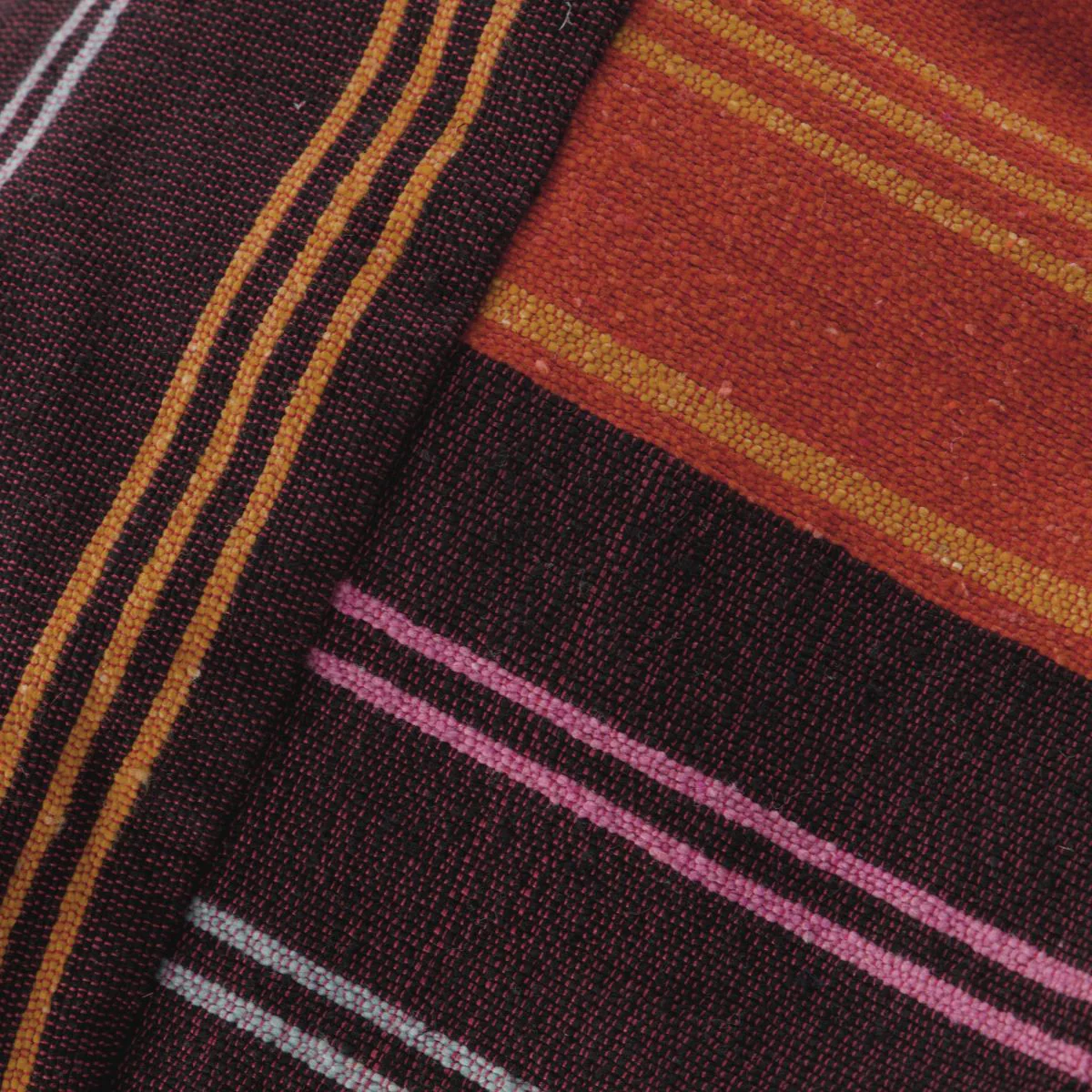 - Estampado que combina rayas verticales y horizontales. Colores cálidos.