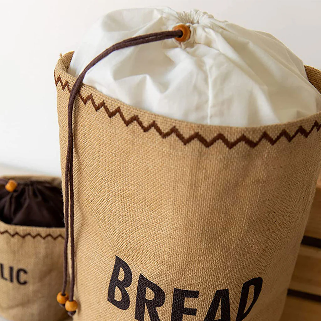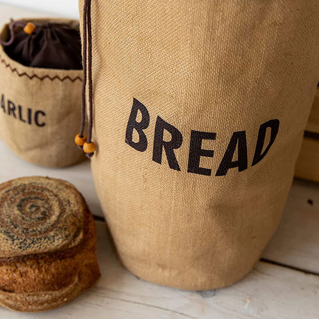 Cuenta con una capa exterior hecha de yute, un material de rápido crecimiento, y un forro interior 100% de algodón. Juntos permiten que el pan respire, evitando la acumulación de humedad y la formación de condensación. Además, la bolsa ayuda a prevenir que el pan se seque rápidamente.
