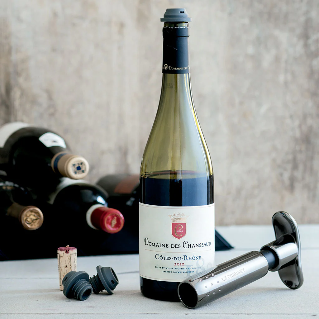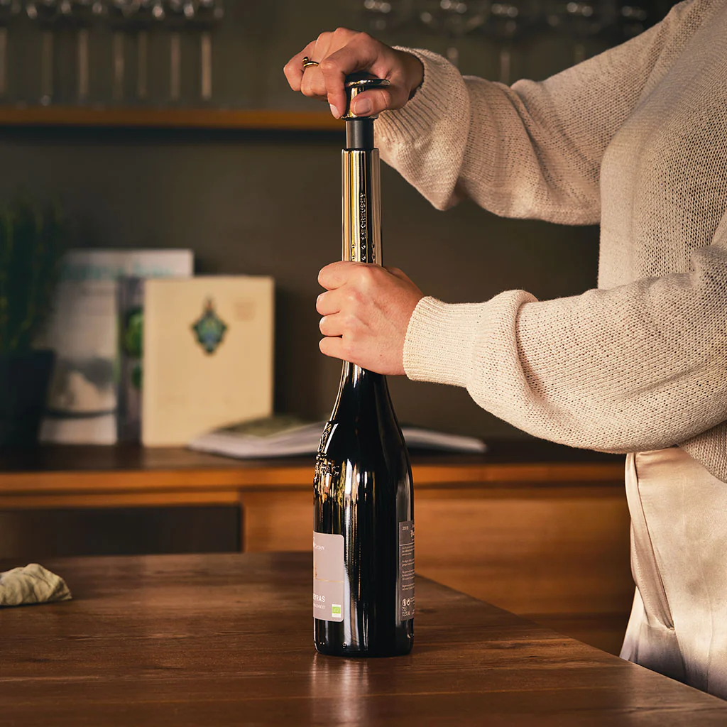 Con la Bomba de vacío W-137 de Le Creuset podrás preservar todas las cualidades de tus mejores vinos una vez abierta la botella, durante varios días. Te permite hacer el vacío, quedando cerrada la botella de forma hermética y manteniendo los aromas y sabores del vino y ralentizando el proceso de oxidación. ¡Podrás saborear cada copa que te sirvas como si fuera la primera!