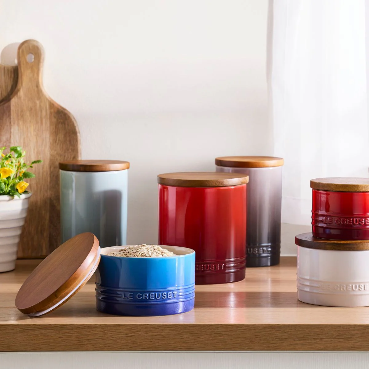 Elegante y versátil en todas sus medidas y colores, el nuevo diseño del Bote cerámico con tapa de madera Signature Le Creuset te va a enamorar. Este tarro de cerámica de gres con tapa de madera es de lo más funcional. Gracias al anillo de silicona de la tapa, es ideal como recipiente de conservación por su cierre hermético. Es un bote estupendo tanto para guardar los ingredientes secos en el armario de la cocina, como para llevarlo a la mesa para presentar el azúcar, la sal, las salsas o unos bastones de pan. Elige el tamaño y el color, ¡o combina los que prefieras para organizar tu cocina de la forma más elegante!