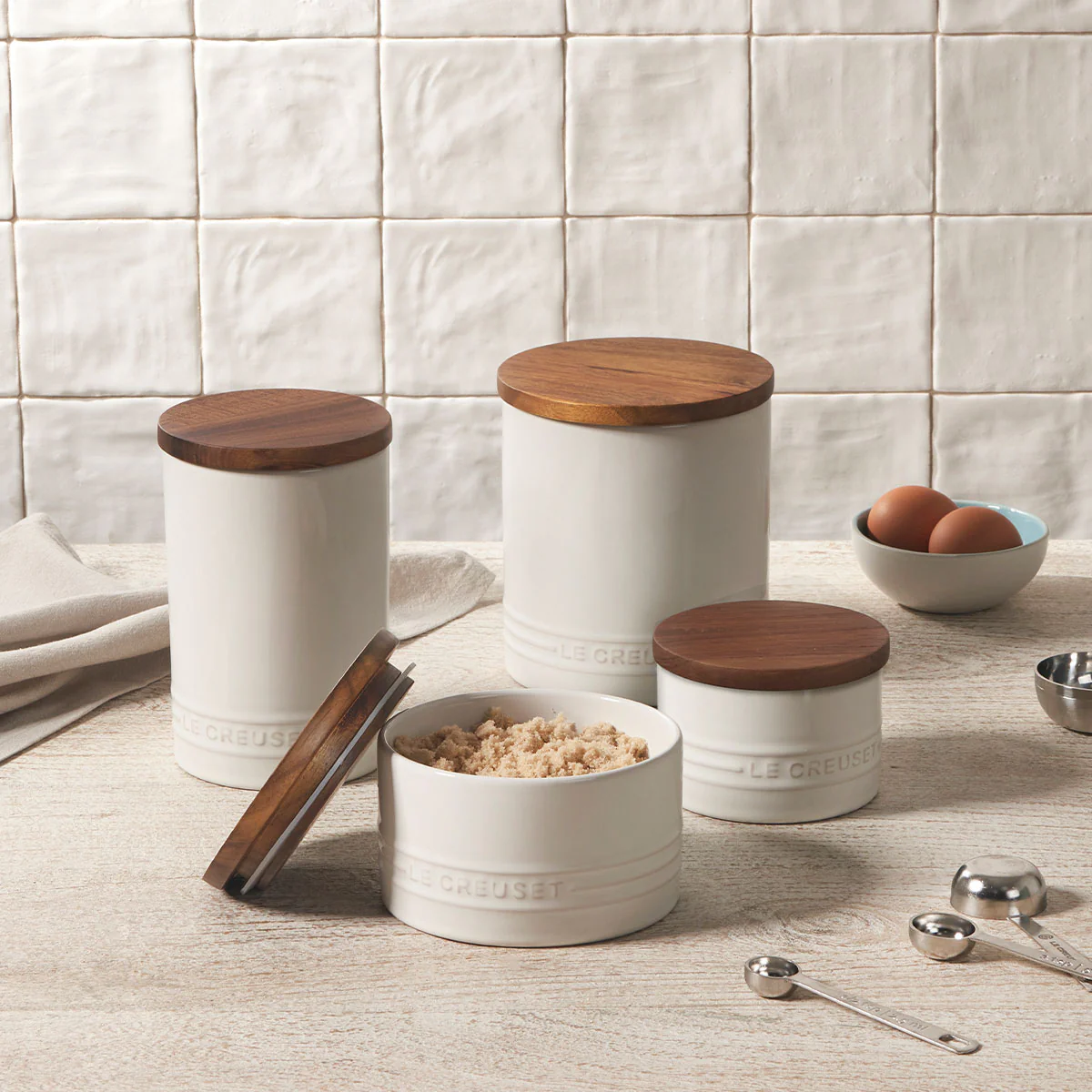 Por qué nos gusta el Bote cerámico con tapa de madera Signature Le Creuset