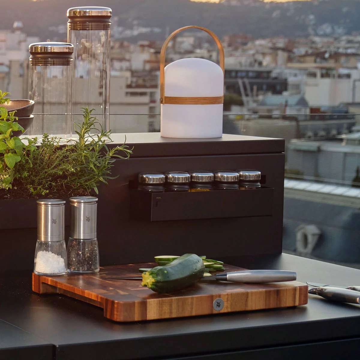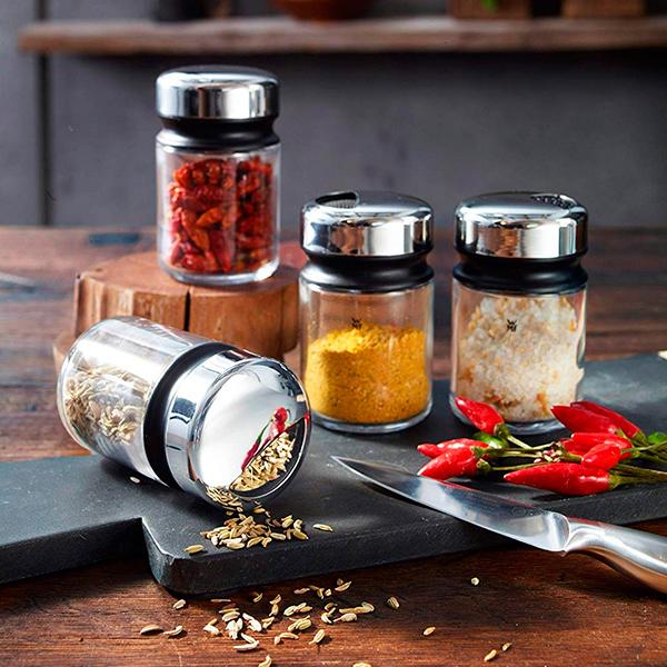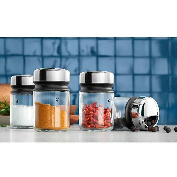 Por su menor capacidad, estos pequeños botes de WMF son ideales para conservar tus especias o aromáticas secas y puedes utilizarlos como dispensador gracias a su tapa con colador universal, que permite sazonar con la cantidad deseada.