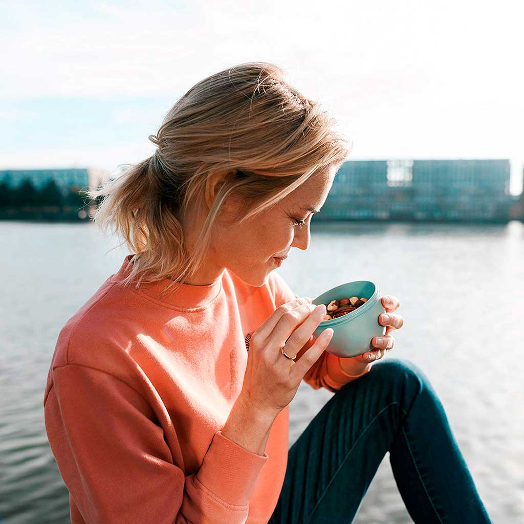 ¿Te apetece un tentempié a media mañana? Con el Bote para Snacks Ellipse de Mepal tendrás siempre a mano un picoteo saludable cuando te entre el hambre. Discreto, elegante y práctico, este recipiente hermético es ideal para llevar en el bolso o en la mochila desde unos tomates cherry o unas croquetas, a una rica crema de verduras, ¡sin que se derrame nada!