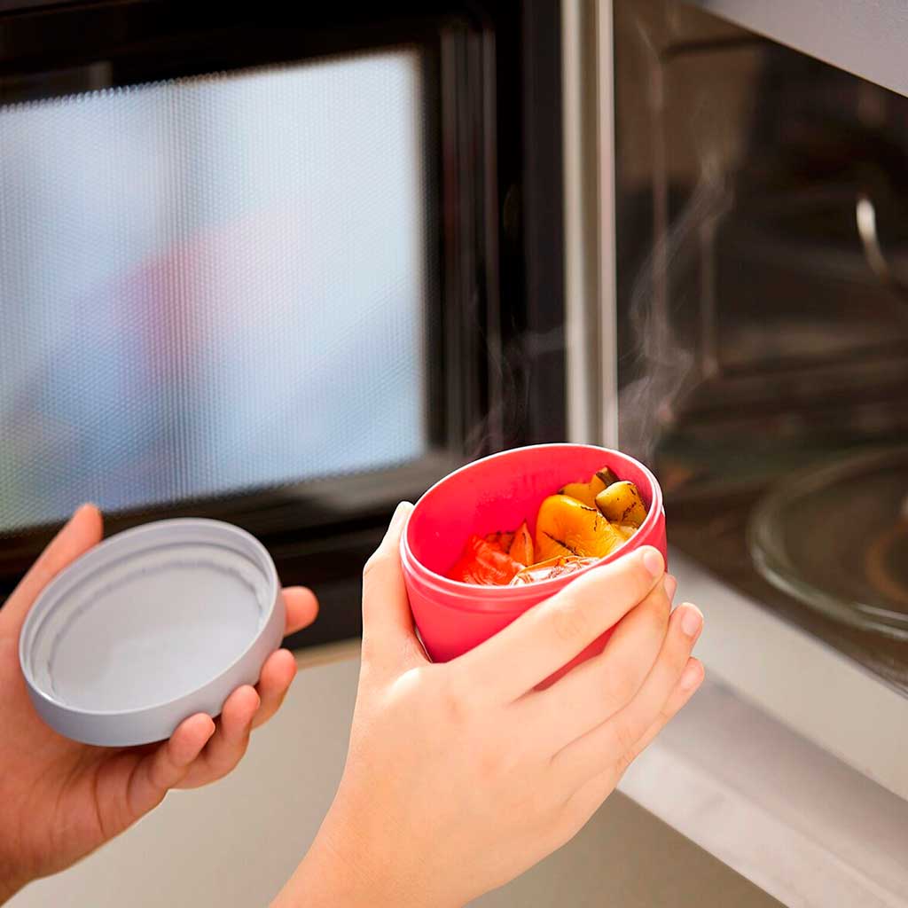 - El Bote de 500 ml es ideal para llevarte la comida al trabajo, ya que incluso podrás calentarla directamente en él. Al ser a prueba de fugas te permite llevarte tanto una ensalada como una crema de verduras, sopa o unas lentejas sin miedo al derrame.