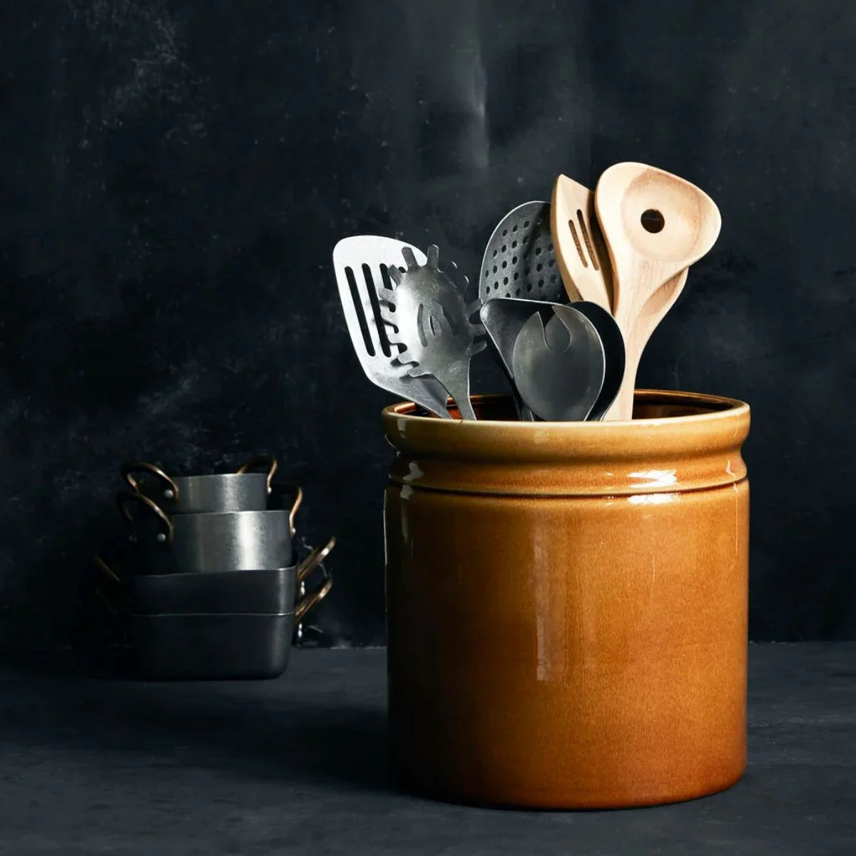 Ya sea para integrar con tonos oscuros o como punto cálido en cocinas más luminosas, este bote es ese pequeño detalle que suma. Discreto pero con personalidad.