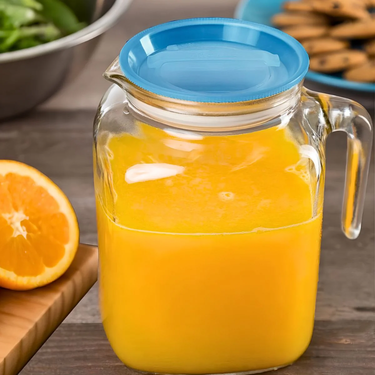 Creo que «compacto» es lo que mejor define esta jarra: es cuadrada -no hay mejor forma de optimizar el espacio-, ¡y ofrece 2 L de capacidad! Así, esta jarra de vidrio grueso es ideal para almacenar tus bebidas favoritas, desde agua o limonada hasta zumo, té helado, batidos, caldo ¡o la crema del día que hayas preparado y quieras guardar!