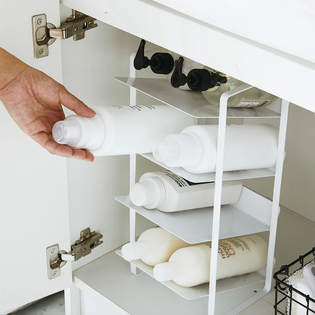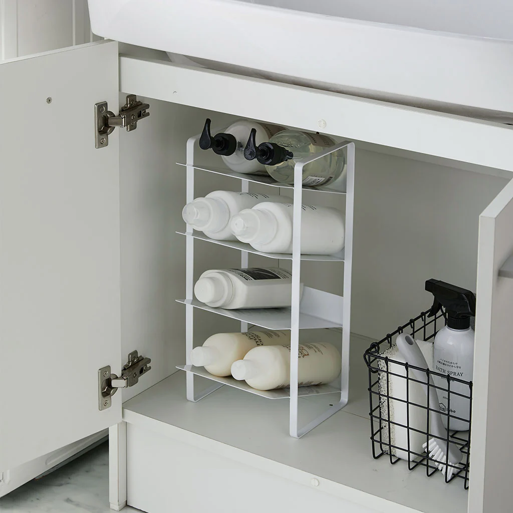 ¡Organiza y optimiza tu espacio con el Botellero de acero Tower de Yamazaki! Este estante de almacenamiento es perfecto para maximizar el espacio debajo del fregadero de una forma limpia y muy ordenada. Con sus 4 niveles, podrás tener a mano cualquier líquido que necesites: desde tus botellas de agua, refrescos, aceite o vinagre, hasta tus champús, detergentes o suavizantes ¡y muchos otros más!