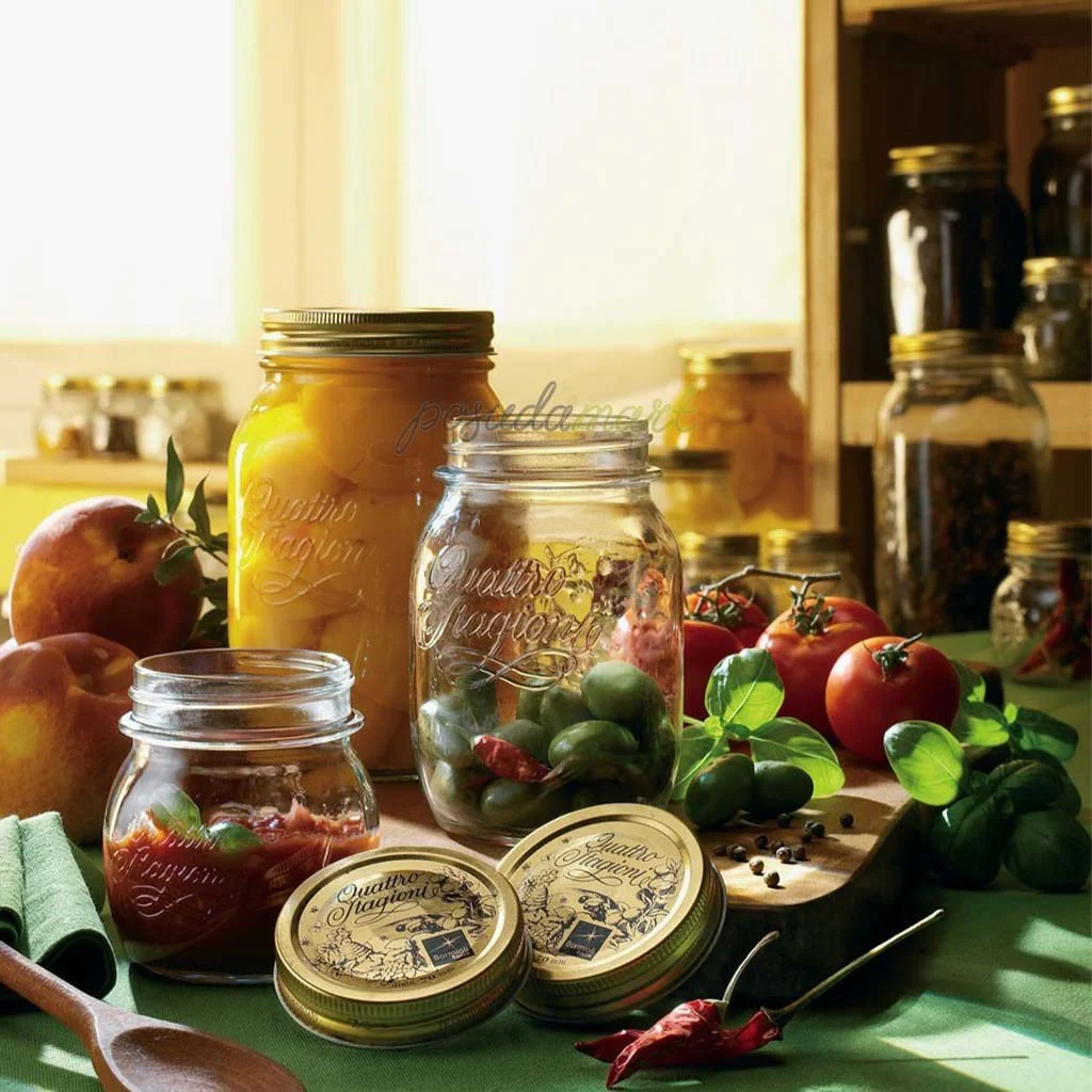 Líderes indiscutibles en Italia, los Botes con tapa «Quattro Stagioni» de Bormioli Rocco llegan a Claudia&Julia para que prepares tus conservas caseras como lo hacen las mammas desde hace más de 40 años. De forma segura, fácil y práctica, la cápsula con goma bajo la tapa asegura el «efecto vacío» en el tarro de vidrio. Todo ello en unos botes en gran cantidad de tamaños y un diseño tradicional de lo más bonito. Los usarás en la cocina para hacer conserva y para almacenar todo tipo de ingredientes.