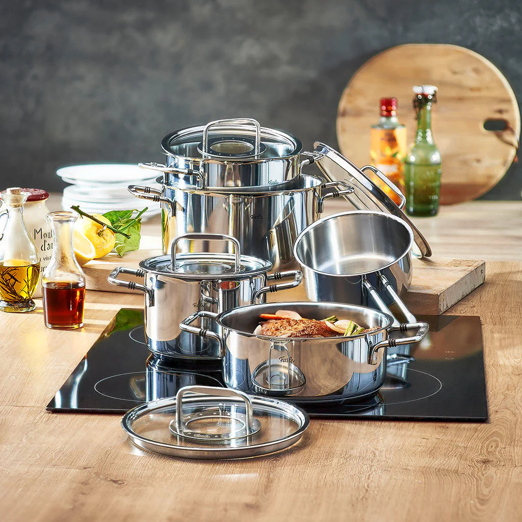 Para mantener frías las asas de acero inoxidable durante la cocción, las cacerolas de esta serie cuentan con protectores inteligentes contra el calor. El fondo encapsulado Superthermic® es apto para todo tipo de cocinas, incluso en las de inducción. Garantiza una óptima absorción, distribución y almacenamiento del calor.