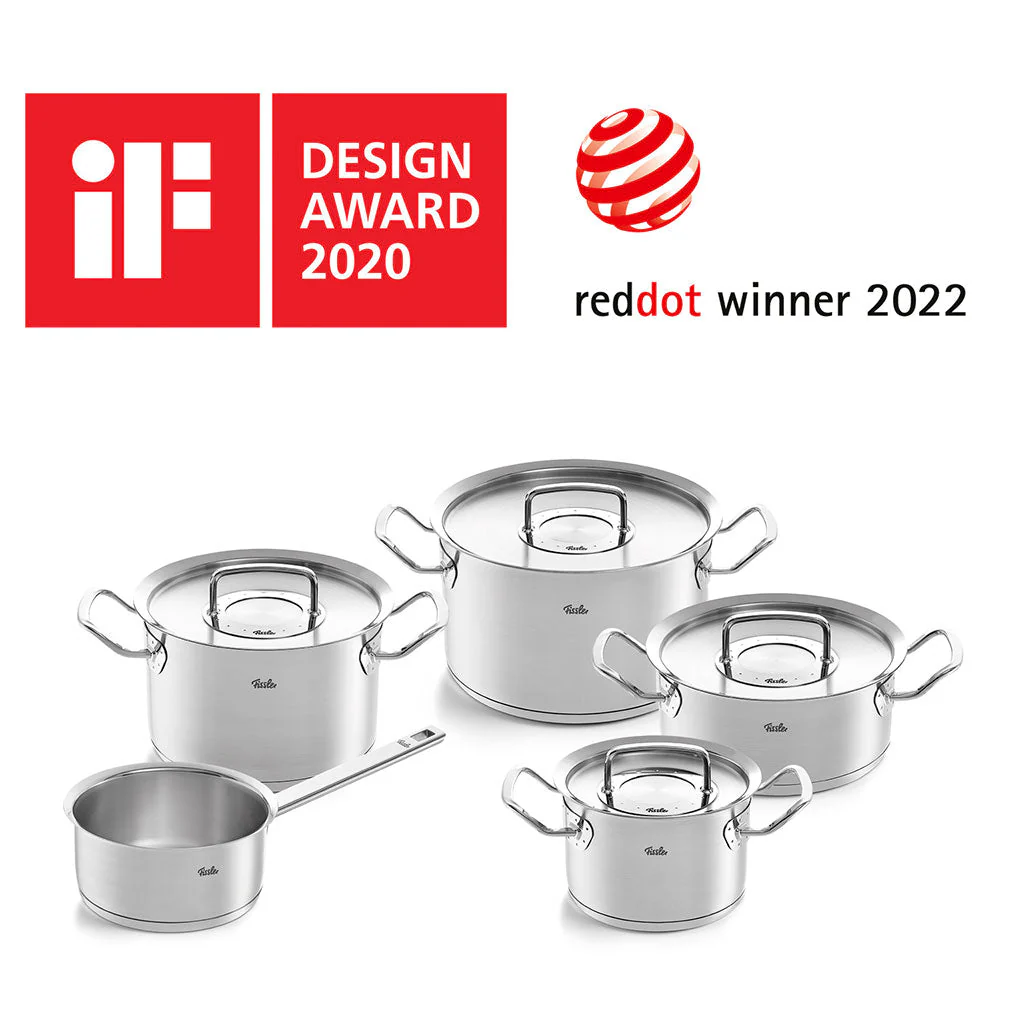 Al igual que el resto de piezas de la batería de cocina Original-Profi Collection® de Fissler esta cacerola también ha sido distinguida por los consumidores con el Kitchen Innovation Award en 2021, un galardón que premia la innovación en la cocina. En su palmarés de premios también se encuentra el IF Design Award en 2020 y el Reddot Award en 2022. ¡A qué esperas para incorporar en tu cocina esta cacerola ganadora!