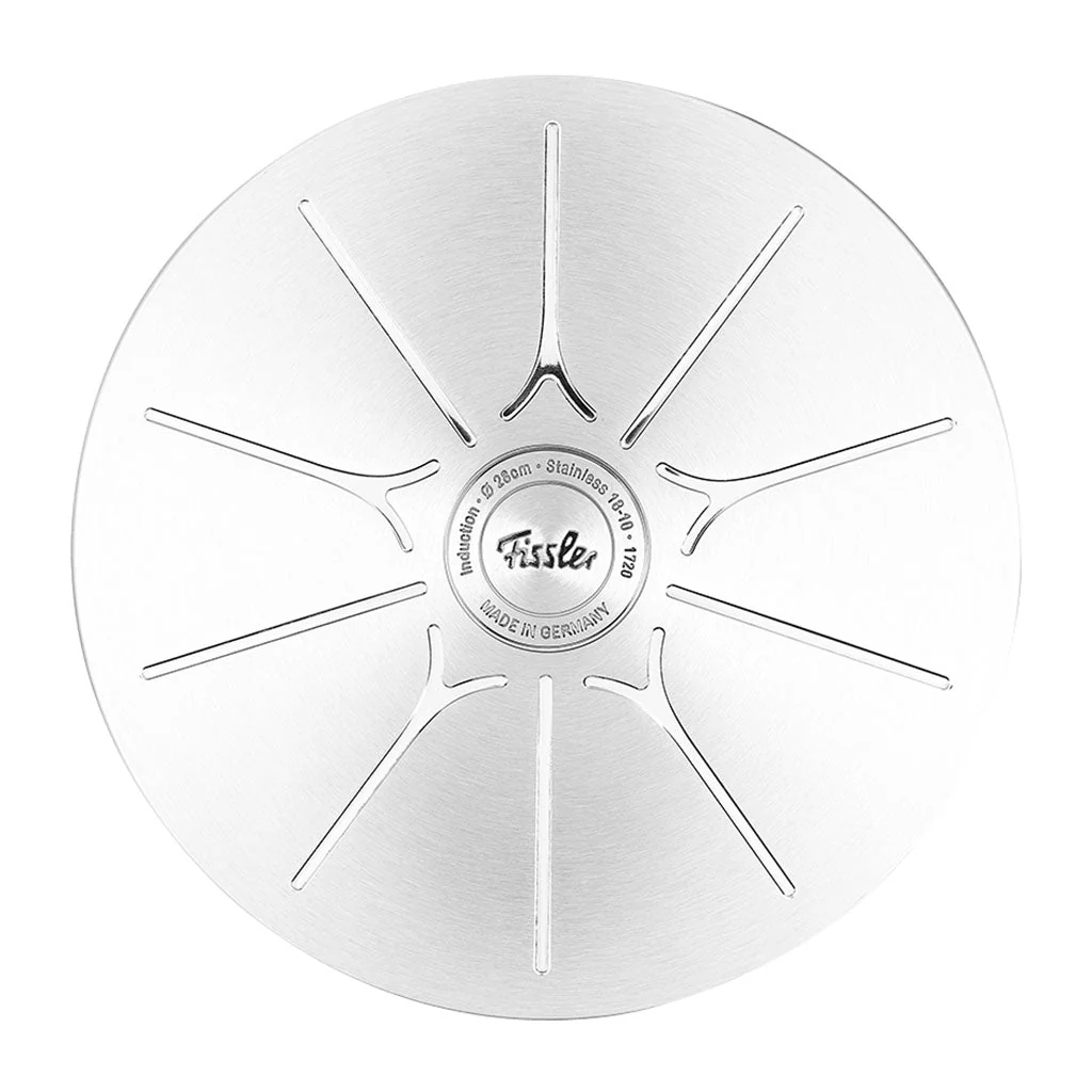 - Fondo difusor “Cookstar®”, exclusivo de Fissler y energéticamente eficiente. Fondo sándwich de acero inoxidable, con disco de aluminio encapsulado mediante prensado de alta presión, que elimina totalmente el aire interior entre capas, proporcionando una mayor durabilidad y un gran aprovechamiento del calor.