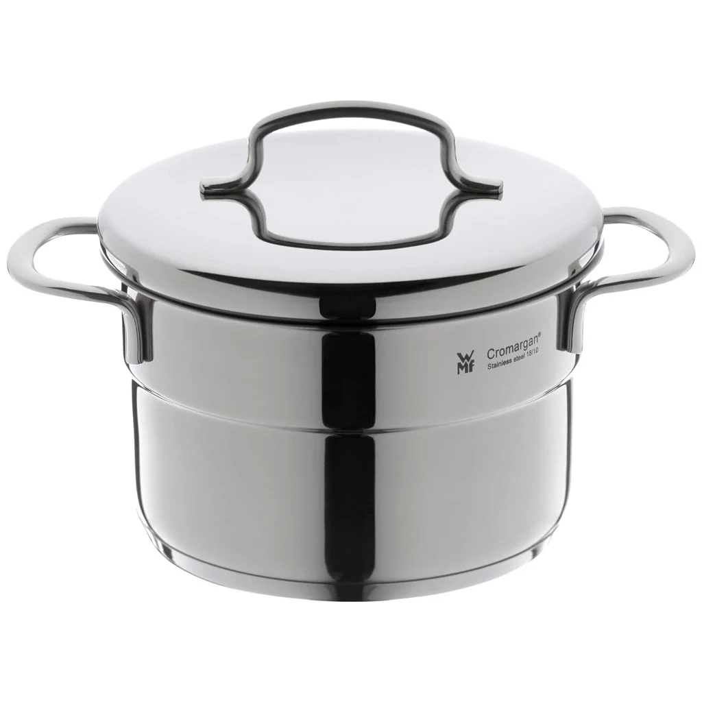 - Cacerola alta con tapa de acero inoxidable 18/10 Cromargan®.