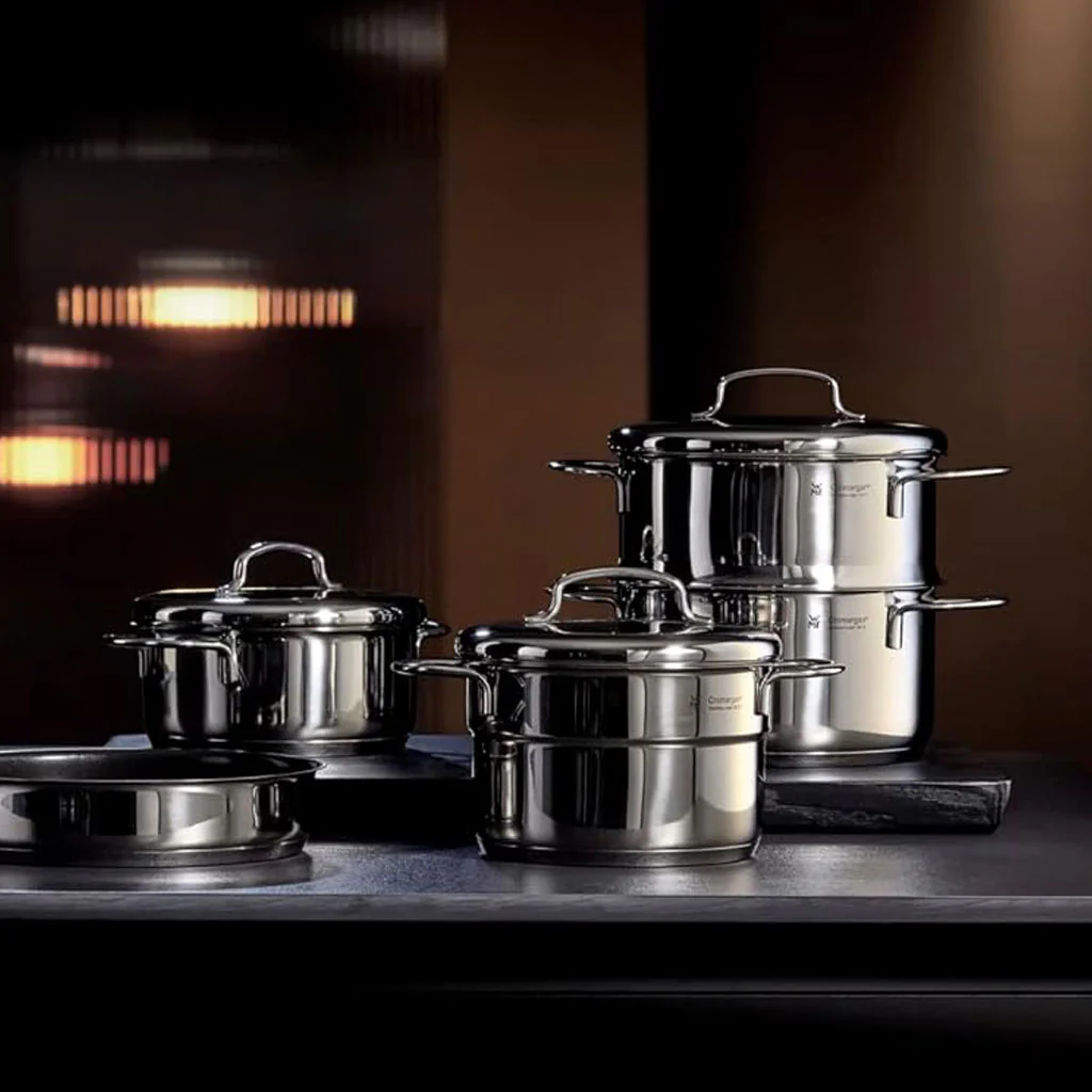 - Tanto la cacerola como la tapa están fabricadas en acero inoxidable pulido 18/10 Cromargan®, lo que hace de ellas piezas duraderas y fáciles de cuidar.