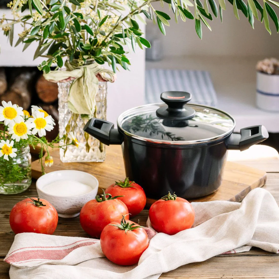 Se trata de una olla fabricada en aluminio forjado, con un fondo de gran espesor (4 mm) para un muy buen reparto del calor en la base. Es apta para todo tipo de cocinas, incluida la inducción, y sus asas de baquelita te aseguran poder manipularla con seguridad (pues no se calientan). Incluye una tapa de cristal para ver la evolución de tus recetas mientras ahorras en tiempo de calentamiento y energía.