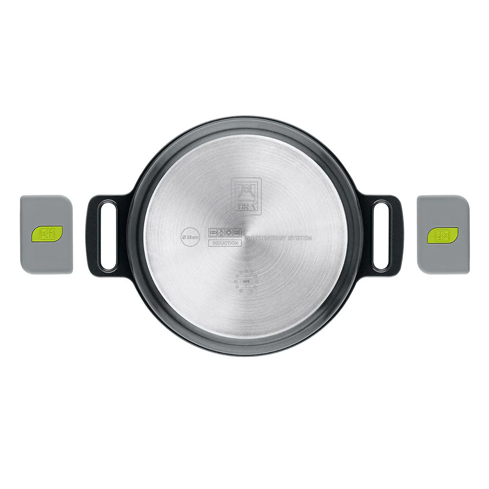 Esta cacerola es apta para cualquier fuente de calor, incluida la inducción y también puede usarse en el horno sin tapa ni asas. Tanto la tapa como las asas son ergonómicas y termorresistentes para garantizar una sujeción firme y un manejo sin quemaduras inoportunas.