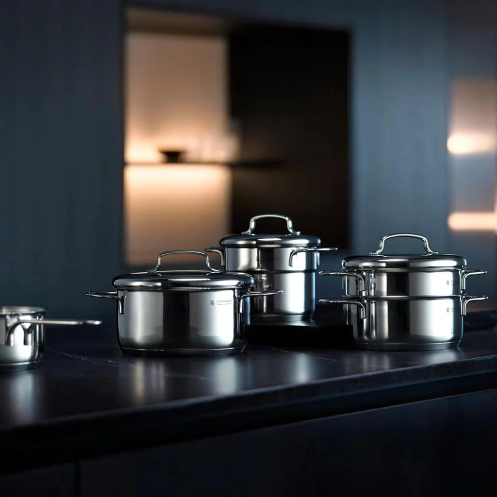 - Cacerola con tapa de acero inoxidable 18/10 Cromargan®.