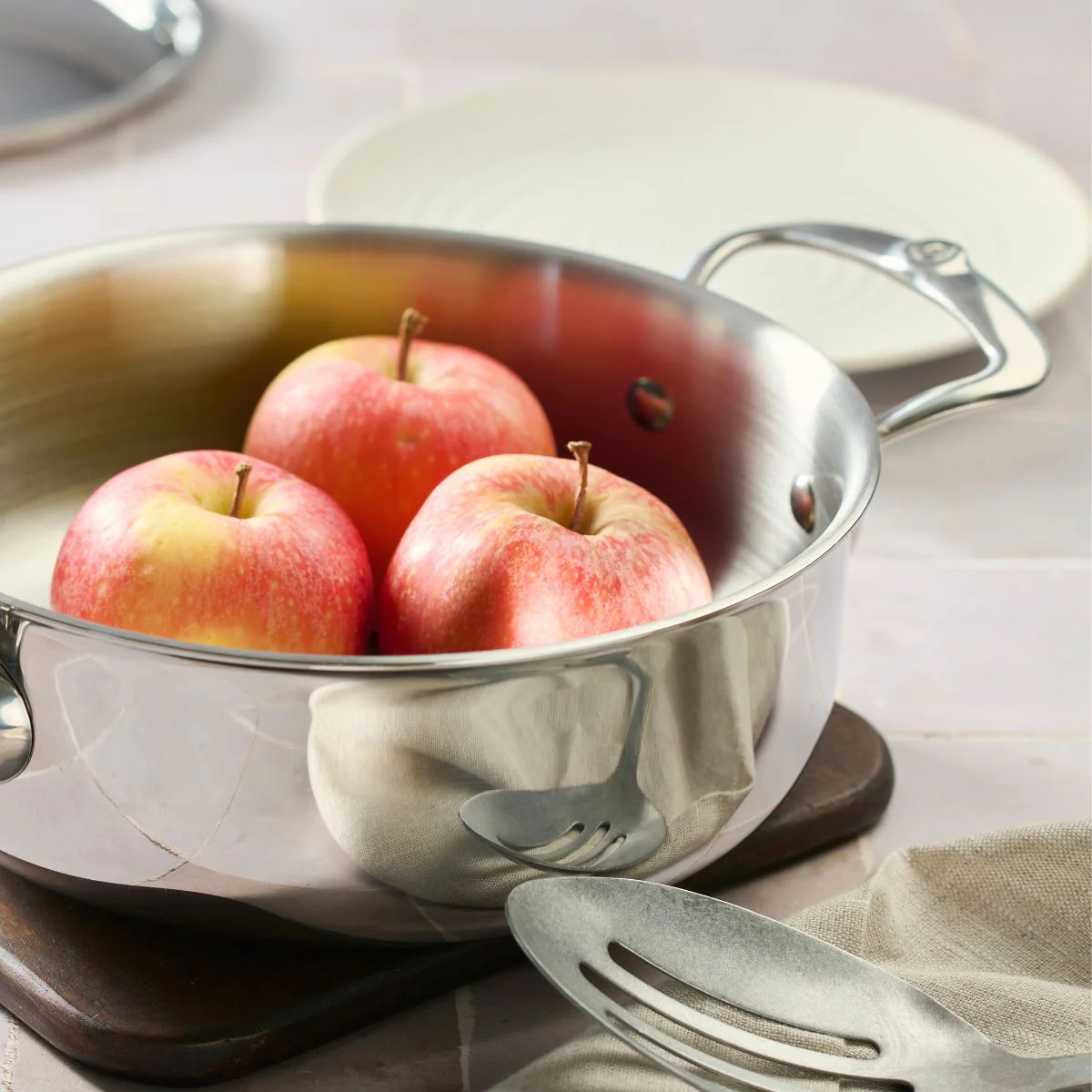 Por qué nos gusta la Cacerola baja de acero inoxidable con tapa Affinity de Buyer