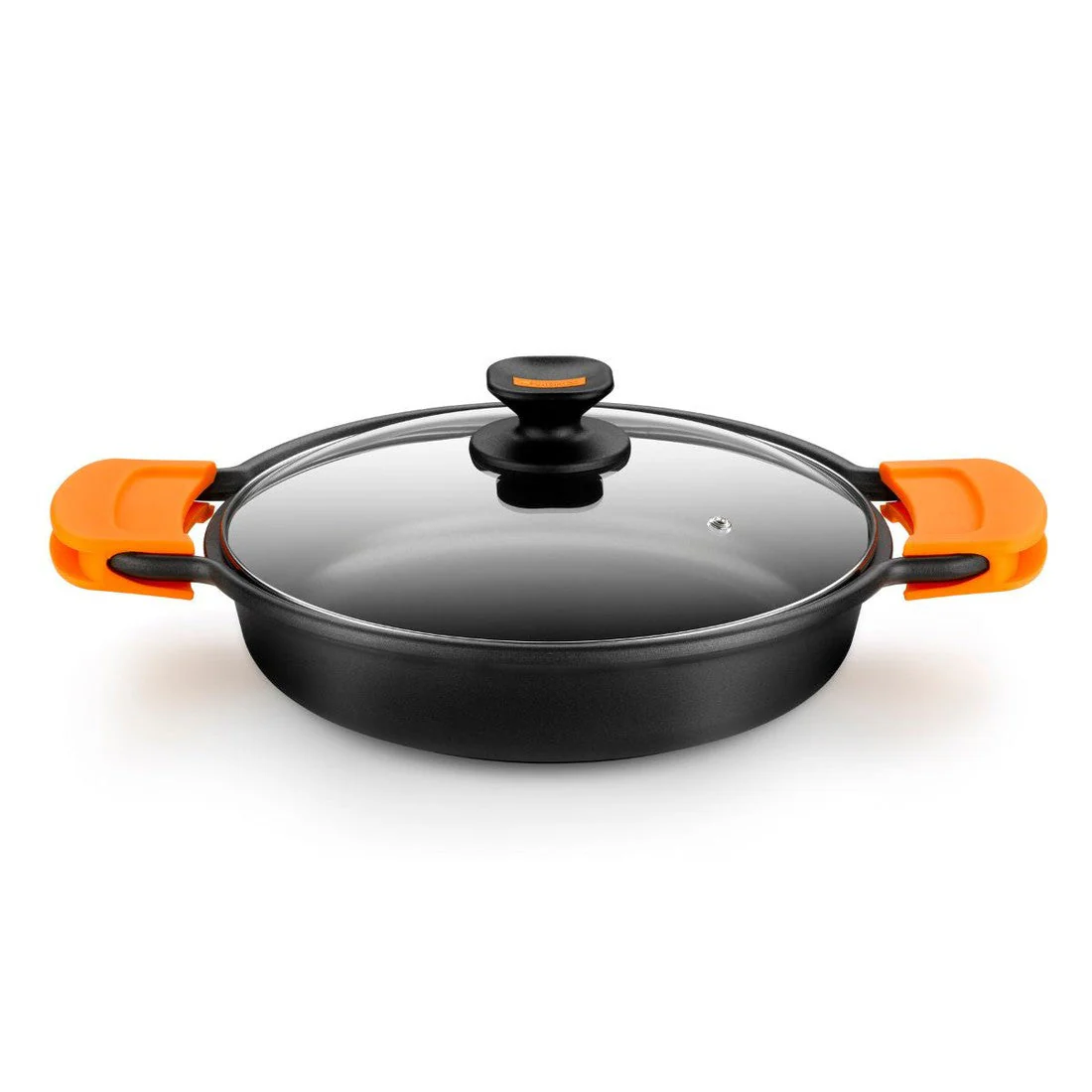 Es la pieza perfecta para guisos, salteados y arroces. Su construcción robusta garantiza una distribución homogénea del calor, cocinando tus platos a la perfección. La tapa de cristal es práctica para seguir el proceso de cocción sin interrupciones.