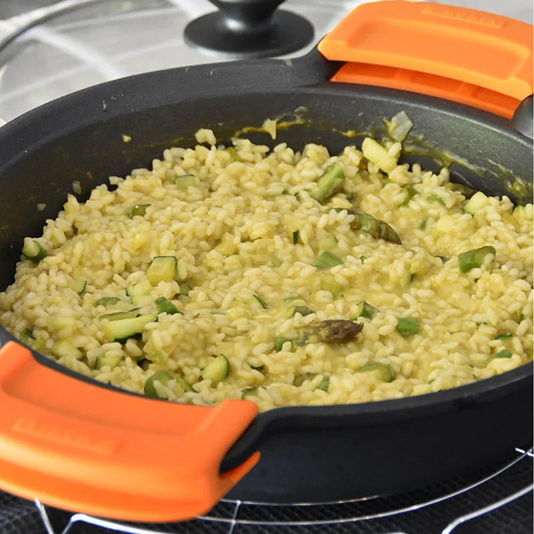 Ergonómica y segura, sus asas de silicona extraíbles no solo proporcionan un agarre firme y cómodo, sino que te permiten retirarlas para poder cocinar al horno. Pollo, pescado, bizcochos, arroces… ¿Ya saber con qué la estrenarás?