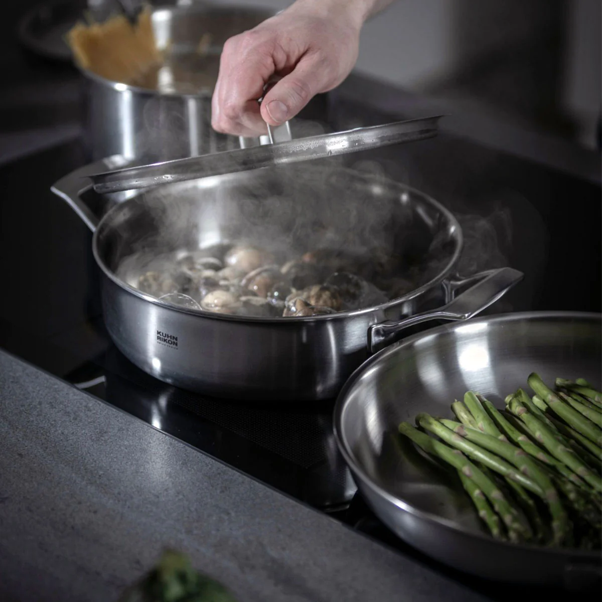 Por qué nos gusta la Cacerola baja tipo rustidera de acero inoxidable con tapa FivePly Kuhn Rikon
