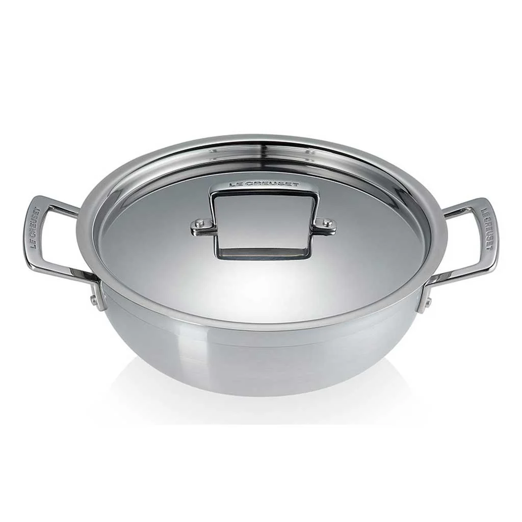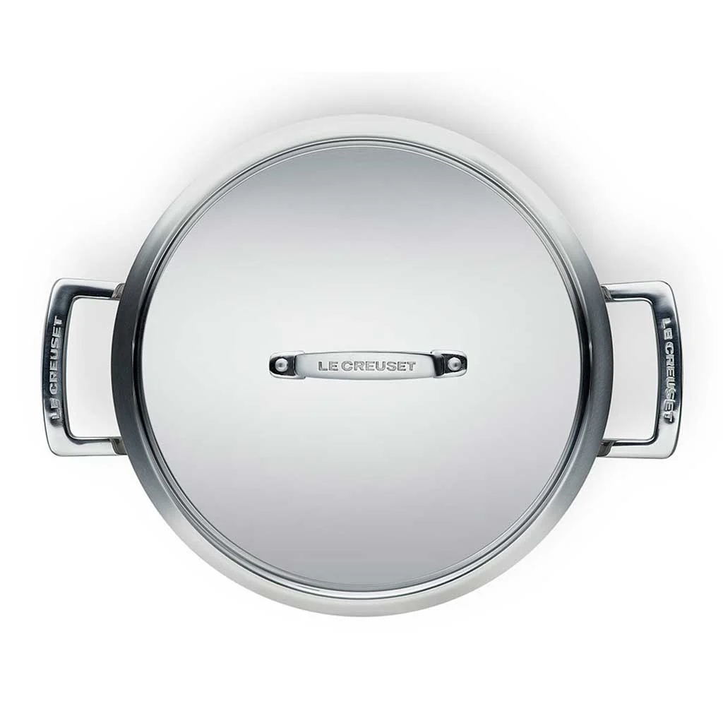 - Tecnología multicapa 3-ply Le Creuset: acero inoxidable y aluminio de alta calidad adheridos para formar un material de tres capas que distribuye el calor de manera uniforme por todo el recipiente.