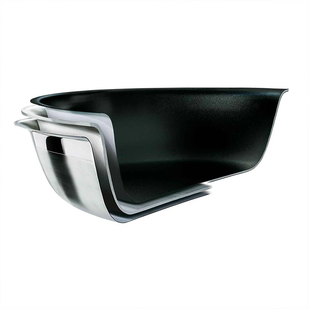 El acero inoxidable de su capa exterior alcanza y distribuye mayor temperatura en menos tiempo y, gracias a su revestimiento interior, disfrutarás de los beneficios de su extraordinaria anti adherencia. Es una cacerola perfecta para cocinar con muy poco aceite.