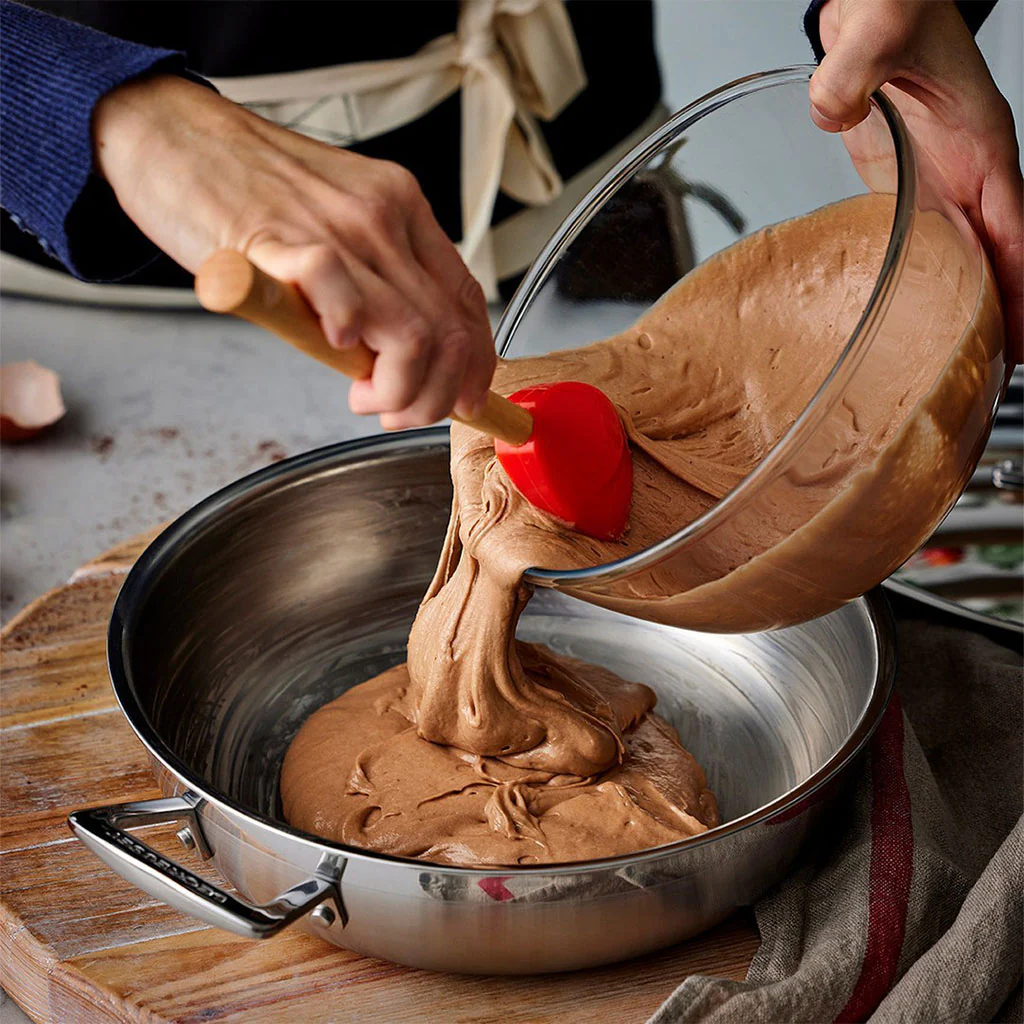 Esta cacerola es de lo más polivalente. Su exterior en inox te ayudará a conseguir un control perfecto y alcanzar cuando quieras elevadas temperaturas. Ideal para preparar guisos de cuchara, estofar carnes, freír, hervir, hacer salsas o la bechamel de las croquetas. Es también ideal para hornear bizcochos, panes y brioches, al ser apta para su uso en el horno.