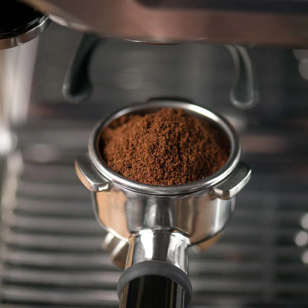 - Una vez el café molido está en el filtro, prensa para compactar y nivela con el razor.