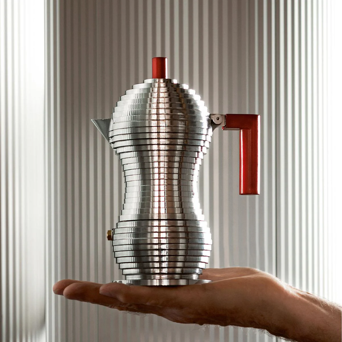 La cafetera de aluminio fundido Pulcina Alessi es una preciosidad. Su forma es tan original que a simple vista llama la atención de cualquiera y es una cafetera que aporta un toque de diseño a cualquier cocina o comedor. Diseñada por Michele de Lucchi es mucho más que una cafetera: ¡es una verdadera obra de arte!