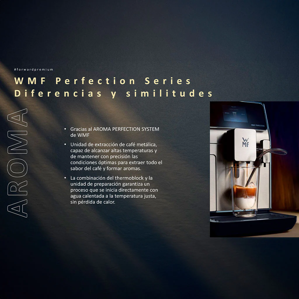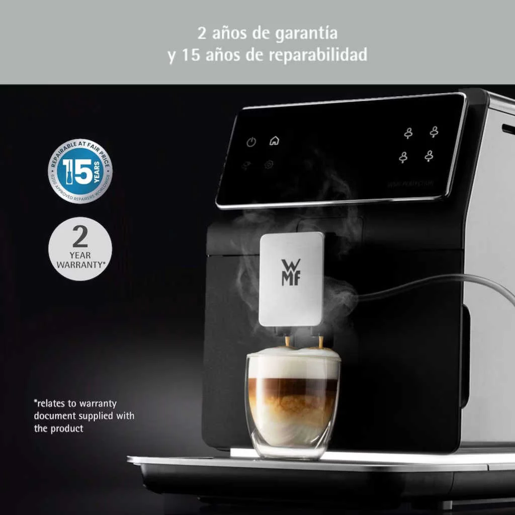 La Cafetera Full Auto Perfection 840 WMF te permitirá degustar tu café con el sabor y aroma que desees en todo momento. Una cafetera superautomática premium que proporciona una gran funcionalidad y un diseño que rebosa elegancia y sobriedad, para que empieces a disfrutar de tu bebida desde el momento en que la pongas en marcha.