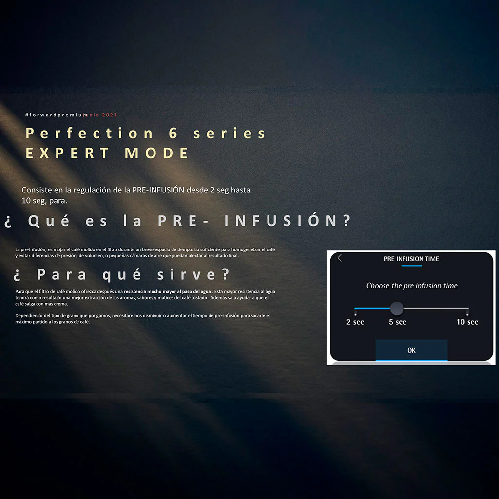 El uso intuitivo de su pantalla táctil, el sabor lleno de matices del café y de la espuma de leche perfecta, su diseño visualmente elegante, el impresionante aroma de tus bebidas y el delicado y armonioso sonido de su molienda y funcionamiento, harán de cada sorbo un momento único.