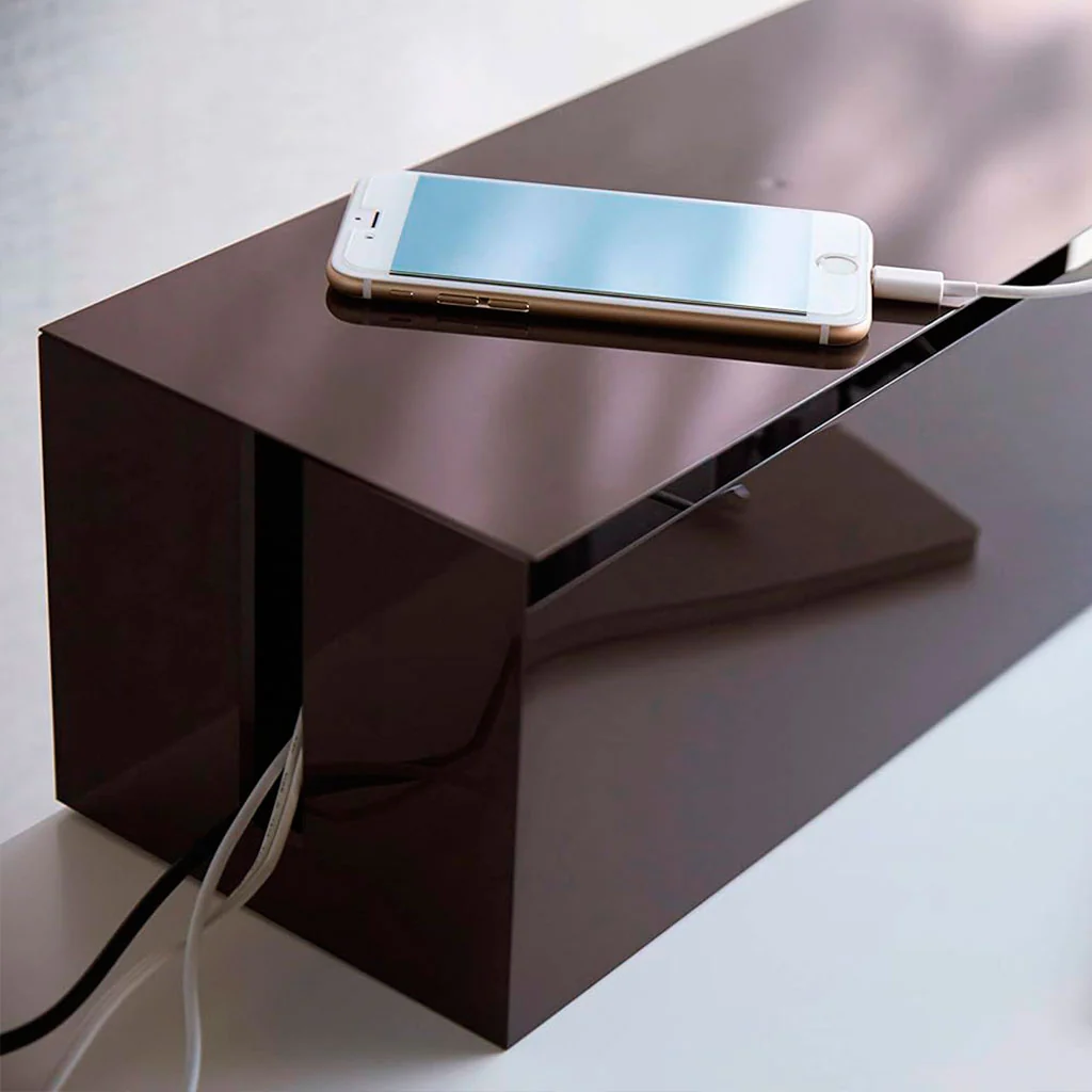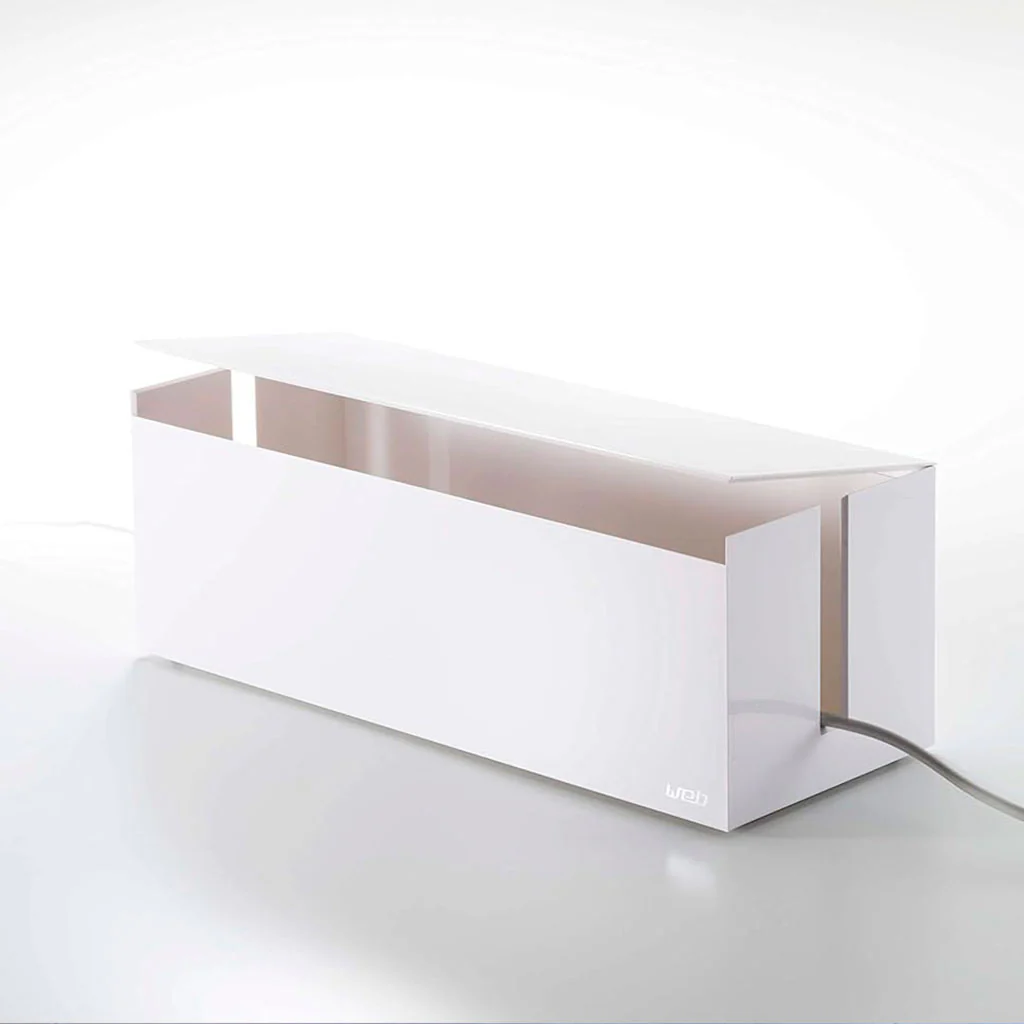 Diseñada con un toque moderno y sofisticado, esta caja de resina no solo oculta tus cables, sino que también puede guardar una regleta con hasta siete tomas de corriente. Tus dispositivos electrónicos estarán ordenados, fuera de la vista y libres de polvo. ¡Más cómoda imposible!