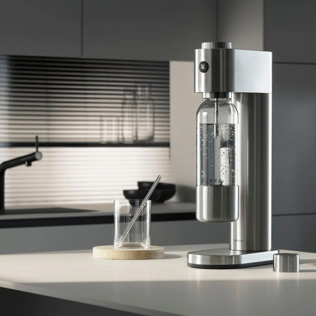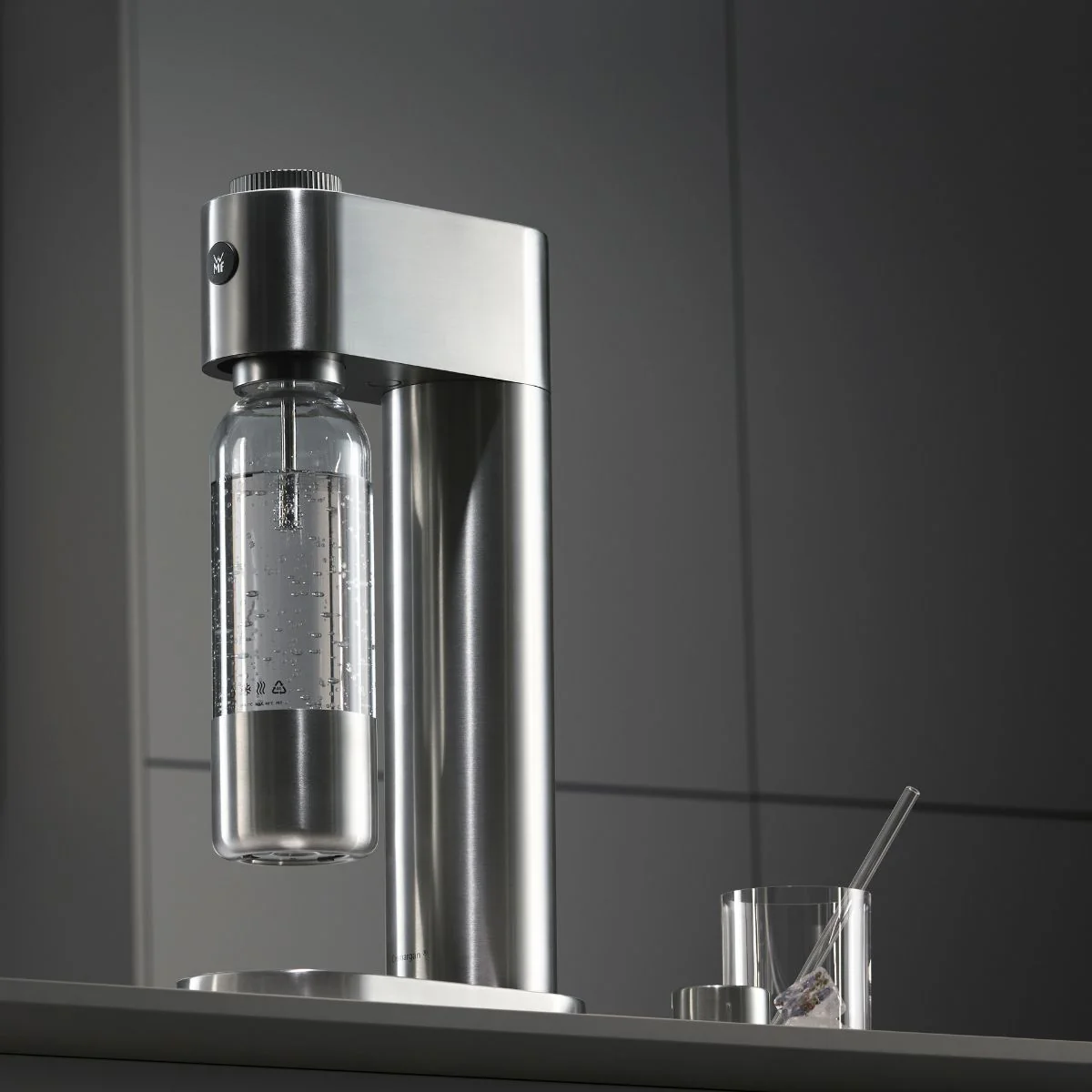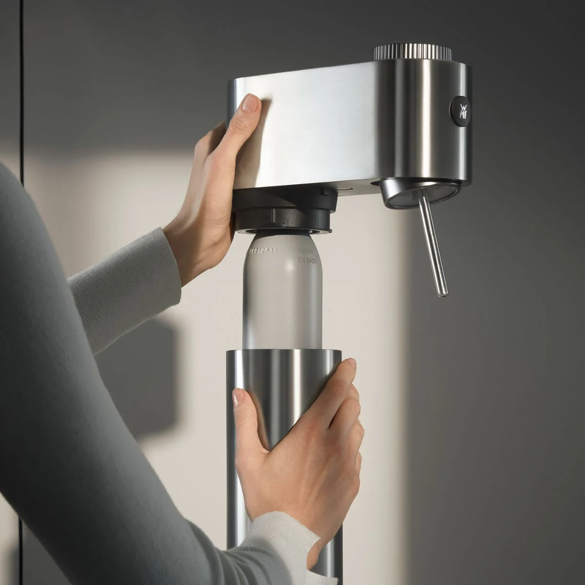 La Carbonatadora WMF Element One es una máquina para preparar agua con gas en casa de forma cómoda, rápida y con el diseño impecable que caracteriza a WMF. Su sistema automático permite carbonatar el agua sin esfuerzo: solo hay que colocar la botella con el sistema click-in, elegir uno de los tres niveles de burbuja y dejar que trabaje. ¡En pocos segundos tendrás agua con gas recién hecha!, exactamente a tu gusto, sin tener que cargar botellas del supermercado ni generar residuos innecesarios.