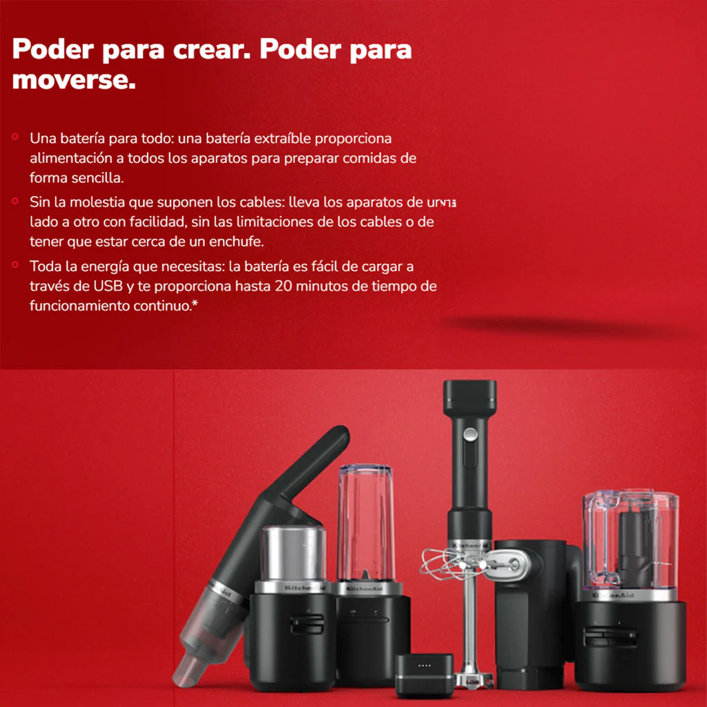 NOTA: La colección Go de KitchenAid está formada por utensilios inalámbricos que funcionan con batería extraíble y recargable de iones de litio. Todos los utensilios de la colección utilizan la misma batería, por lo que puedes adquirir un primer utensilio con batería y hacerte con un segundo utensilio, sin batería. Puedes ver toda la colección Go de KitchenAid aquí.