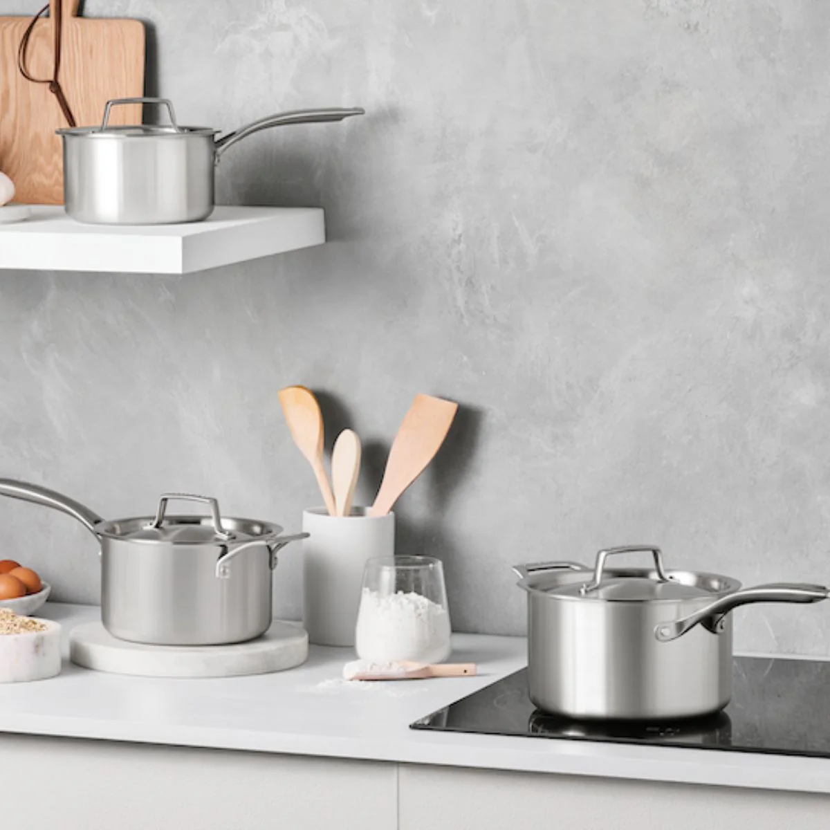 - La elegante tapa de acero inoxidable redondea el conjunto y contribuye a una eficiencia mucho mayor. Al cocinar guisos o calentar líquidos con la tapa puesta, se mantiene el calor y vapor de la cocción, reduciendo el tiempo necesario y proporcionando una mayor jugosidad y sabor en el resultado final.