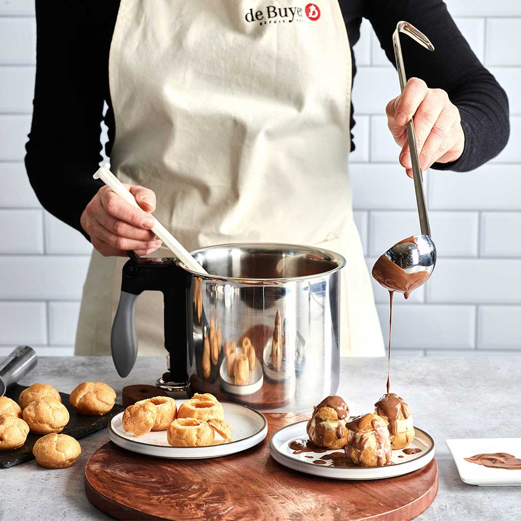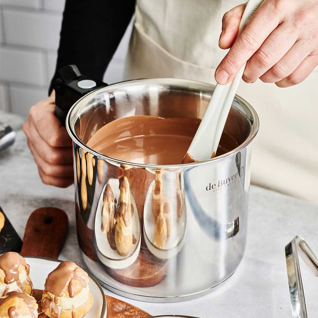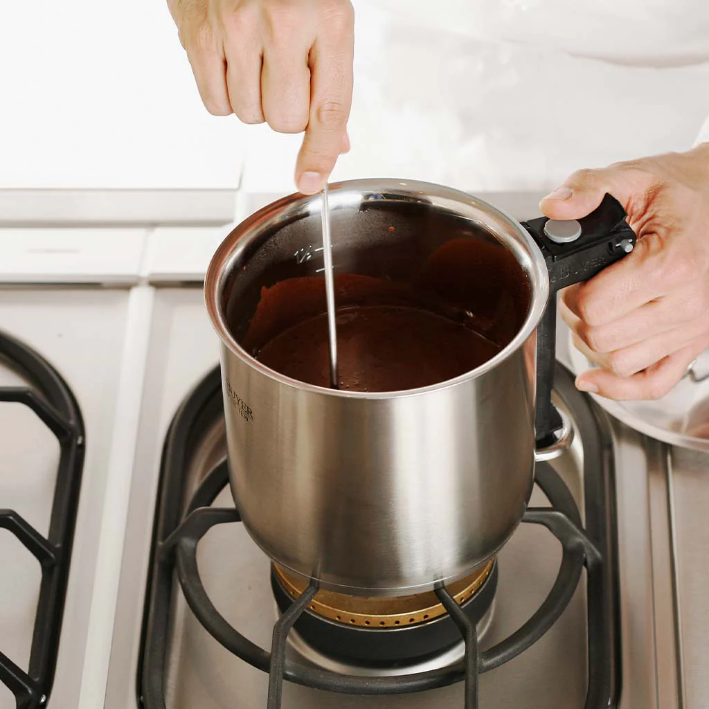 Y no solo para derretir el chocolate. Podrás calentar a baja temperatura, preparar cremas o salsas y mantenerlas calientes con este estupendo pote, usándolo con total seguridad y comodidad, gracias a su mango ergonómico.