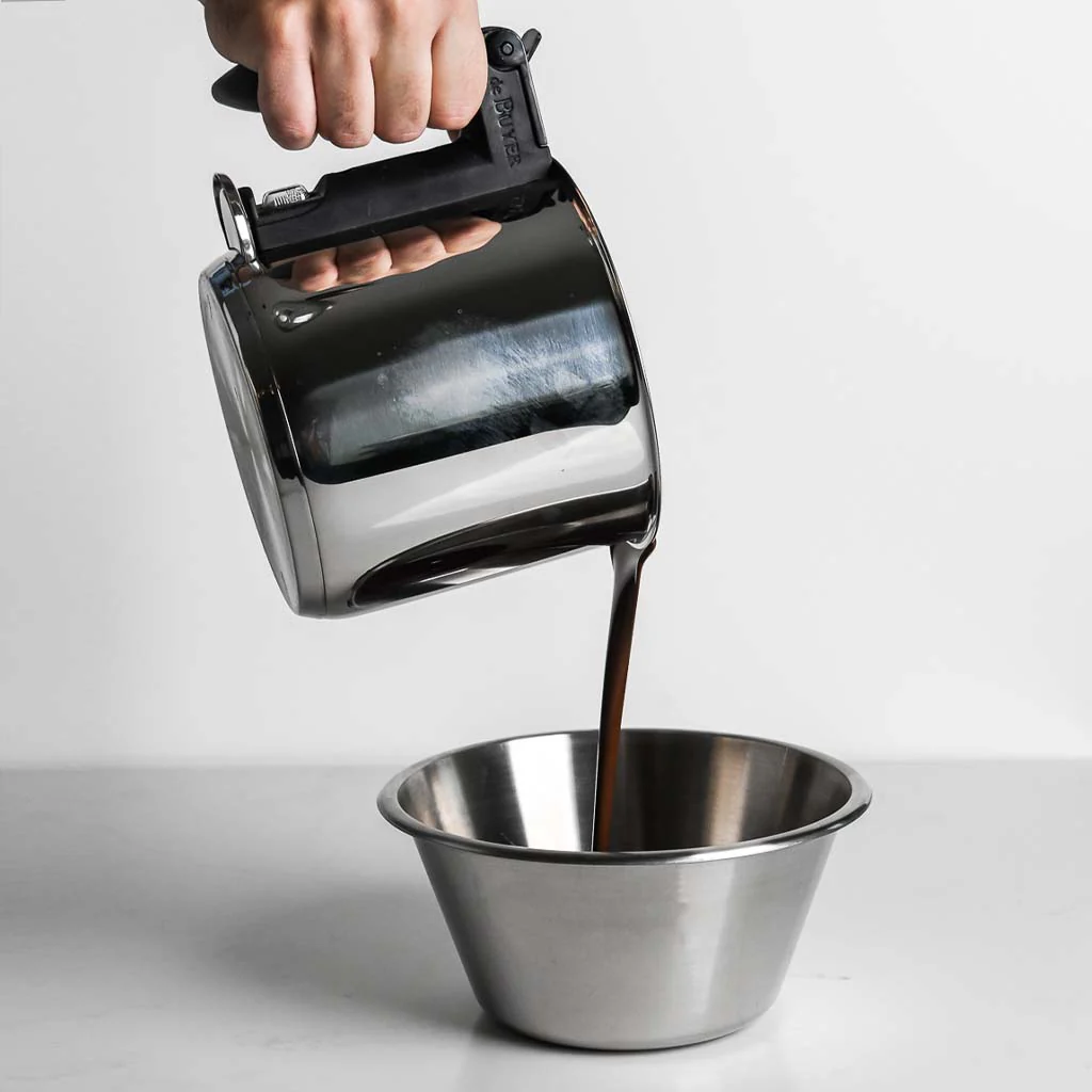 El Cazo baño maría De Buyer es un pote de acero inoxidable con asa y doble pared, con el que podrás cocinar con esta técnica sin riesgos de que el agua dañe tus elaboraciones. Con válvula de seguridad, marcas de medición y borde de vertido, ¡este cazo es todo un acierto!