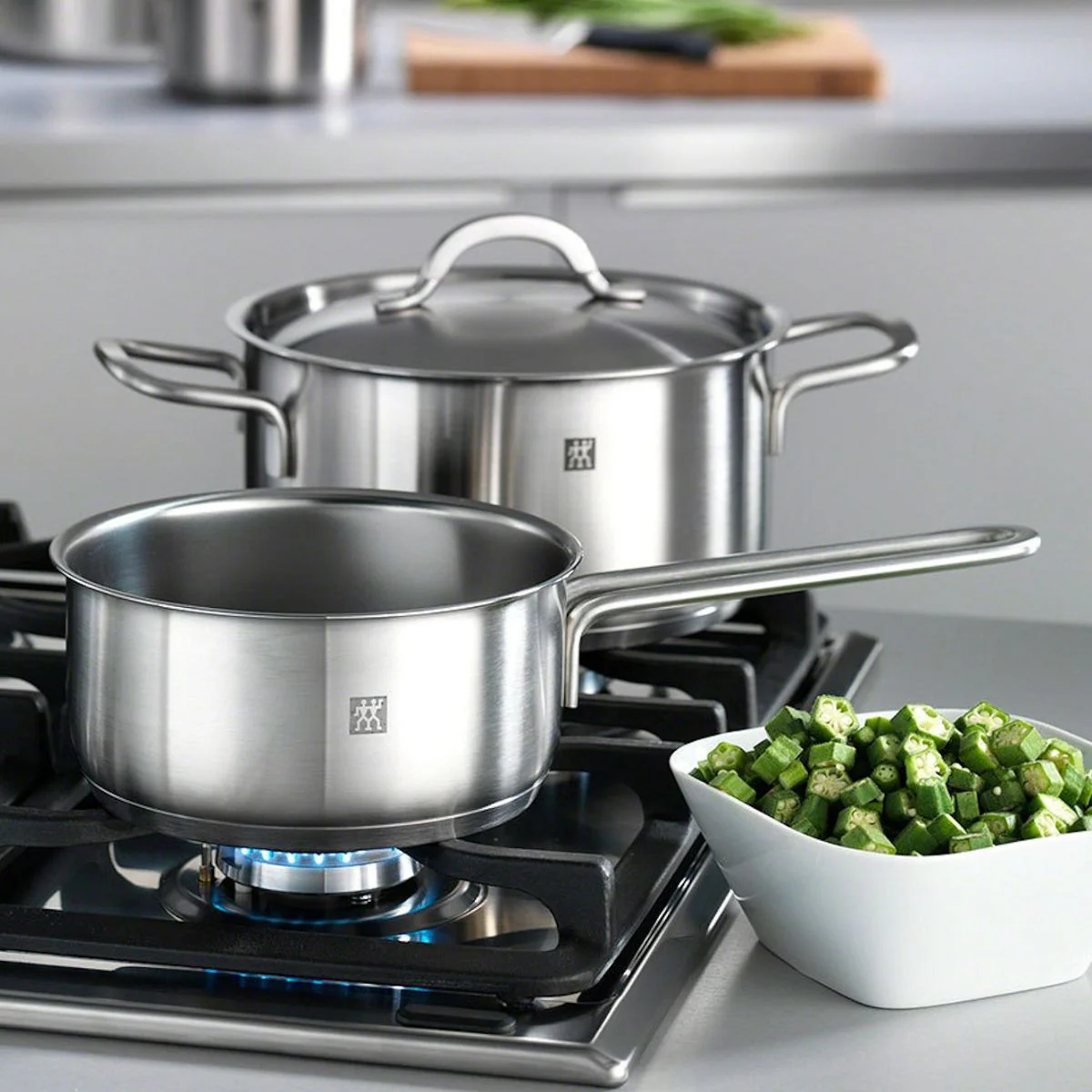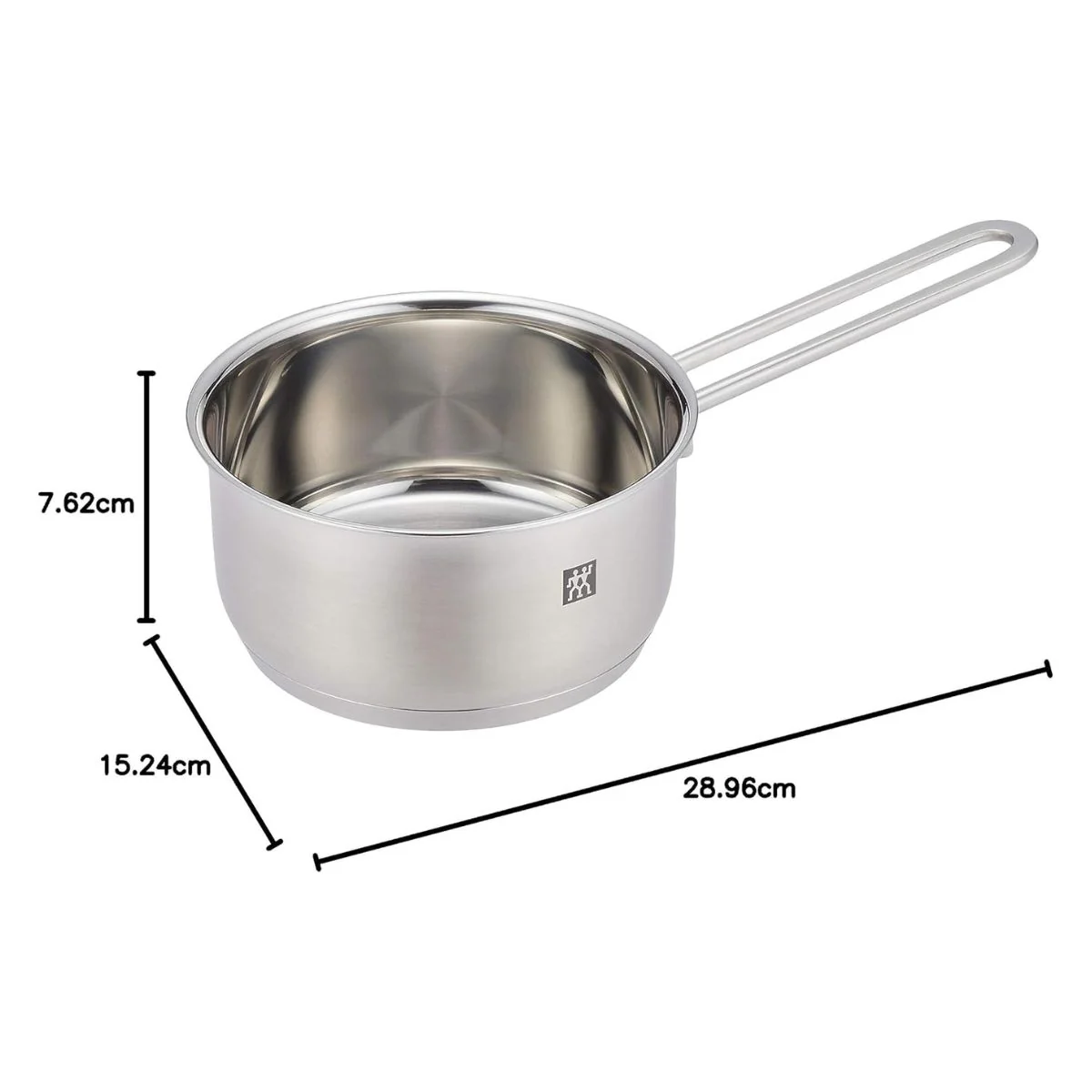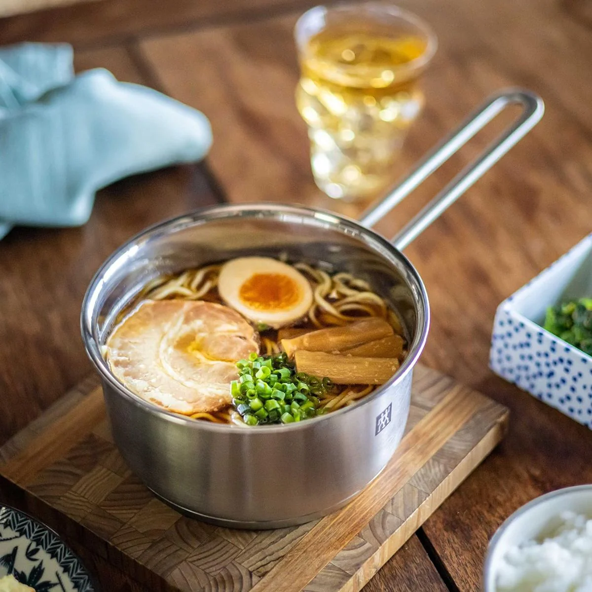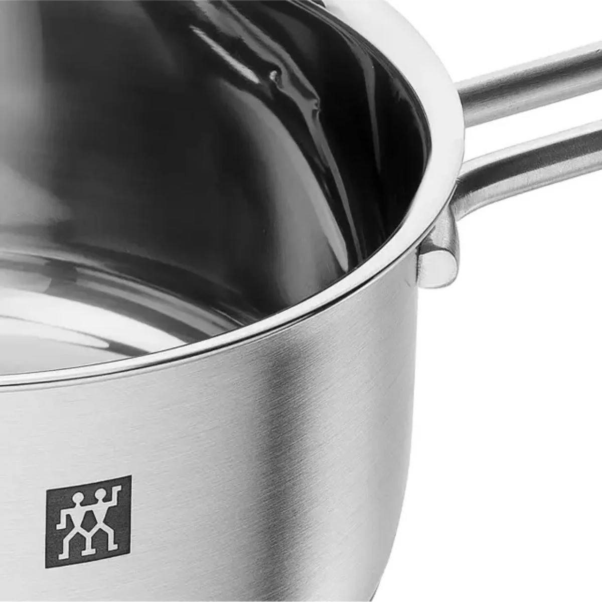 El Cazo de acero inoxidable Pico Zwilling es un pote de lo más versátil. Este cazo de inox de 14 cm y de 1 litro de capacidad es la herramienta que más vas a usar para calentar leche o el agua para el té, cocer arroz o una ración de pasta, prepararte una sopa, reducir salsas o freír las croquetas o los buñuelos, usando mucho menos aceite que en una freidora o una sartén. ¿A que es estupendo?