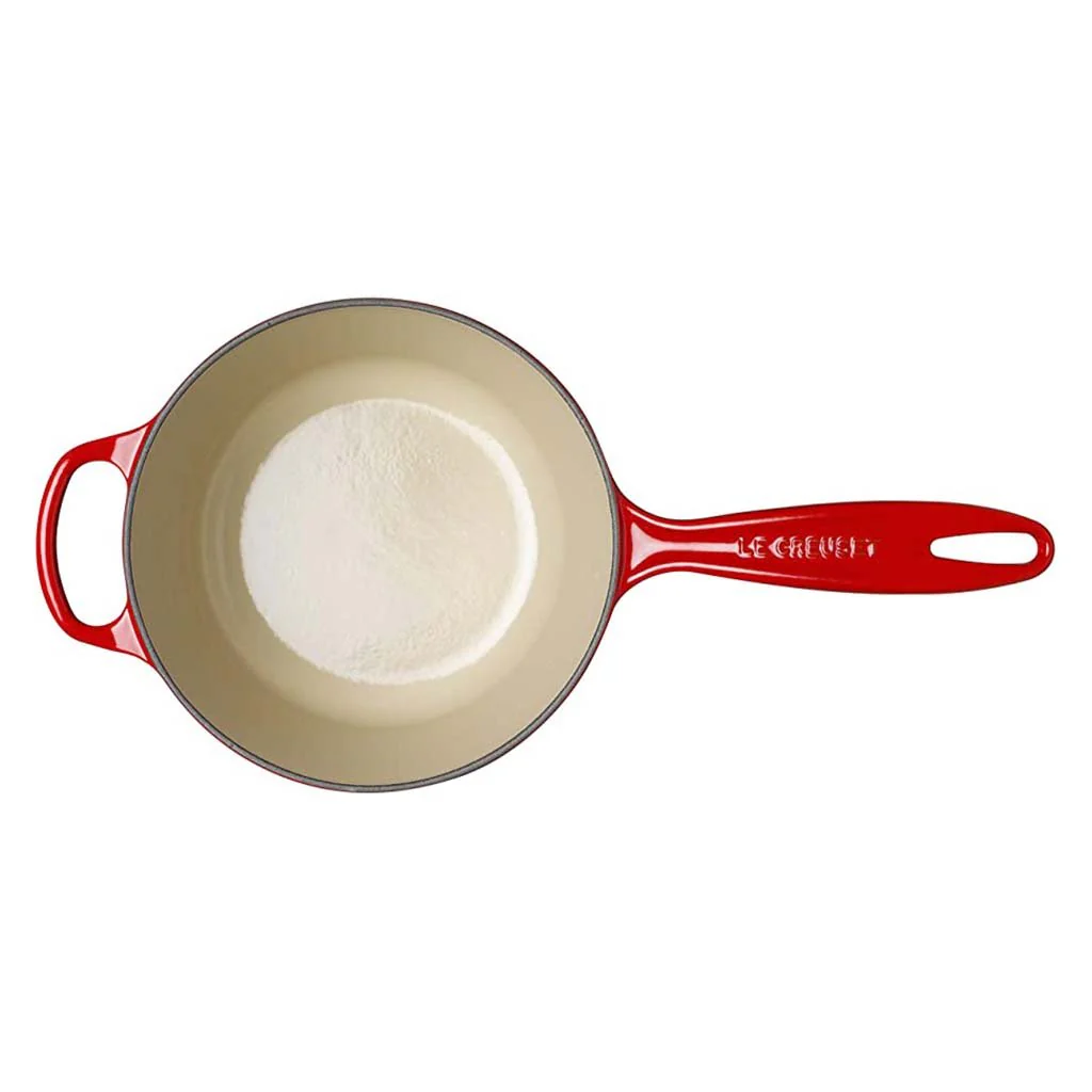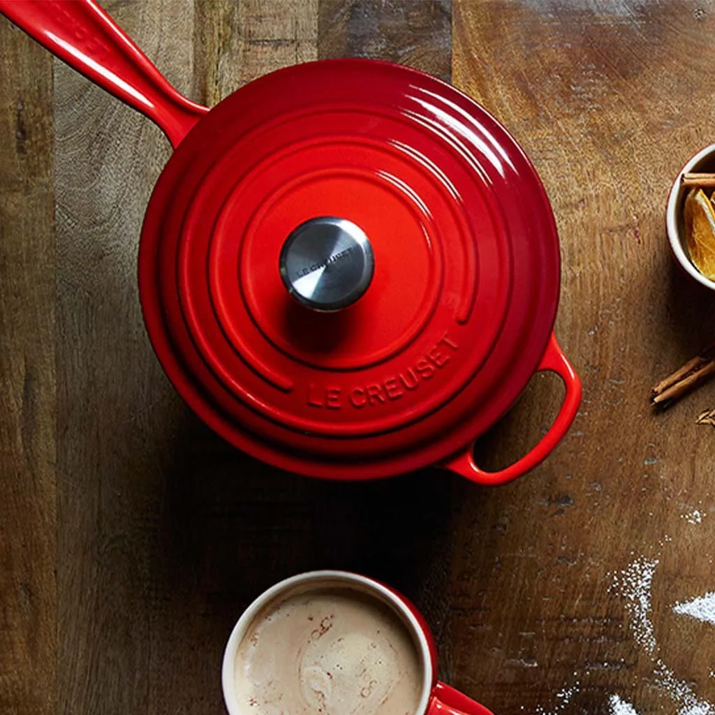 ¡Como una cocotte en forma de cazo! No hay mejor descripción, el cazo de hierro fundido Le Creuset tiene todas las ventajas que tienen las cocottes Le Creuset y con la forma funcional de un cazo, ideal para calentar líquidos, preparar salsas…. y sin duda es perfecta para freír. Escucha lo que tenemos que contarte…