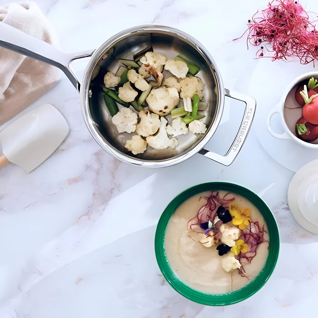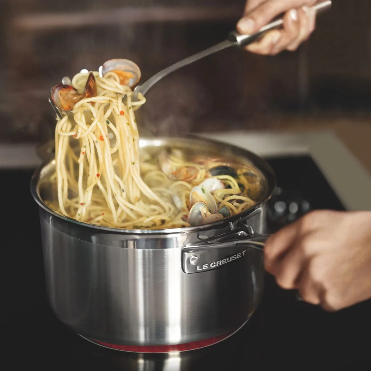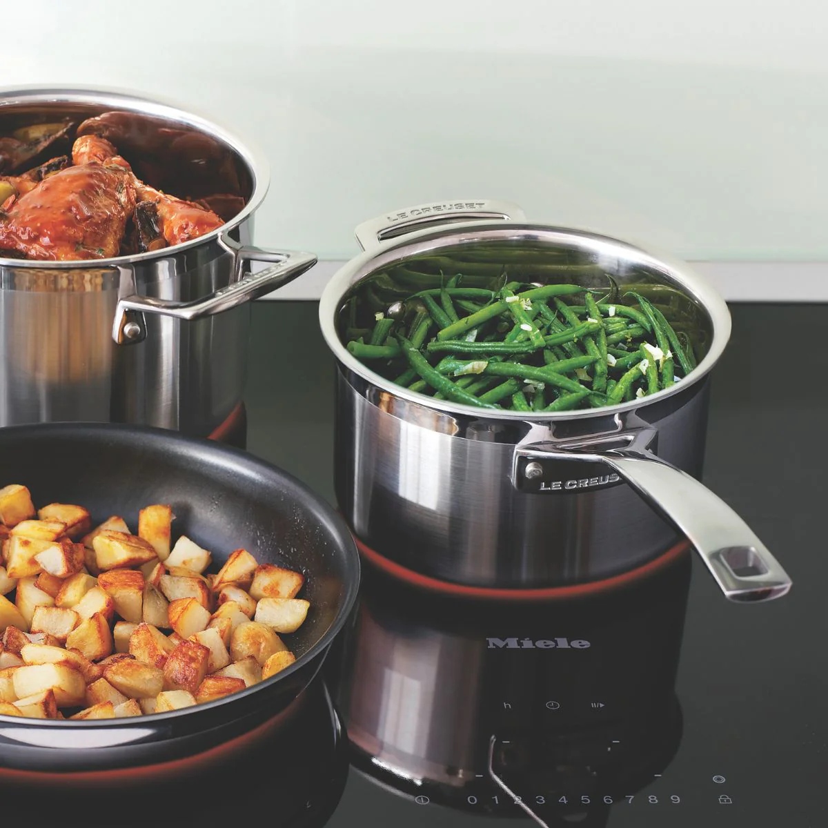 El Cazo Premium con tapa de Le Creuset es un pote ideal para el día a día. Su tecnología multicapa 3-ply combina acero inoxidable y aluminio de gran calidad, resultando un material que distribuye rápida y uniformemente el calor en todo el cazo, consiguiendo excelentes resultados en menos tiempo y con un menor consumo energético. Un cazo profesional, elegante y funcional, pensado para los más cocinillas y las personas que buscan la eficacia en una pieza preciosa.