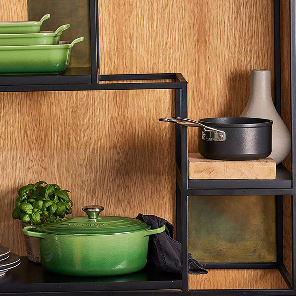 El Cazo PRO de Le Creuset es un pote tan elegante como versátil. Al tener las paredes altas y rectas, cuenta con una generosa capacidad. Es perfecto para calentar líquidos, preparar salsas, purés o cremas, cocer verduras, pasta o legumbres e incluso freír croquetas o buñuelos, sin salpicaduras y de forma rápida y eficiente, gracias su excelente distribución del calor.